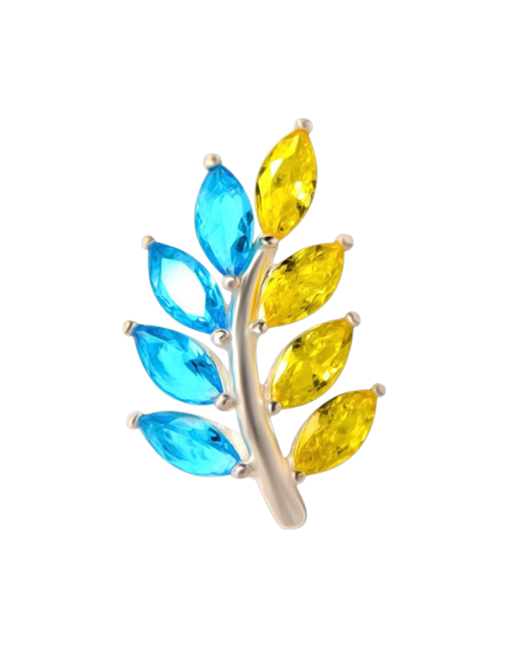925 Sterling Silver Jewellery Pin Wheat with Blue and Yellow Cubic Zirconia