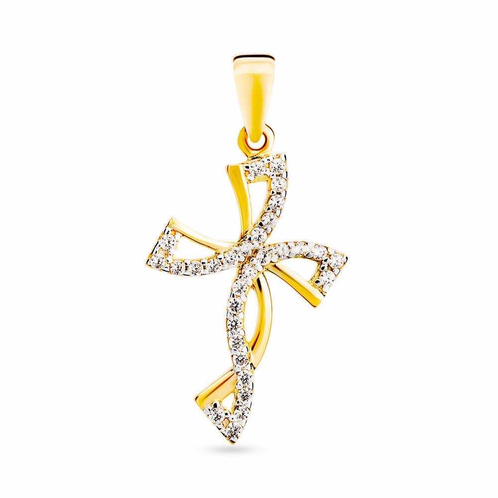 Unique and really cute cross in 14K/585 yellow gold decorated with sparkling cubic zirconia.