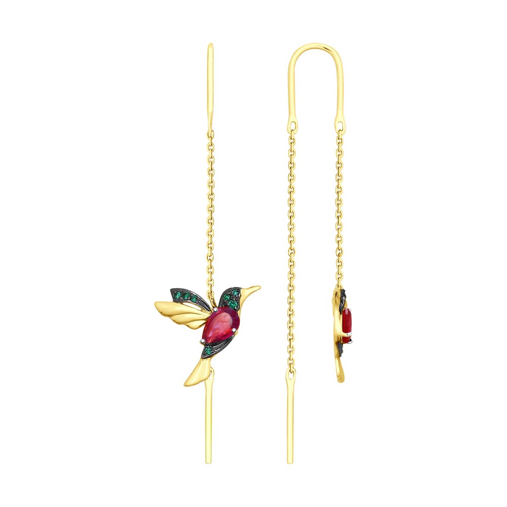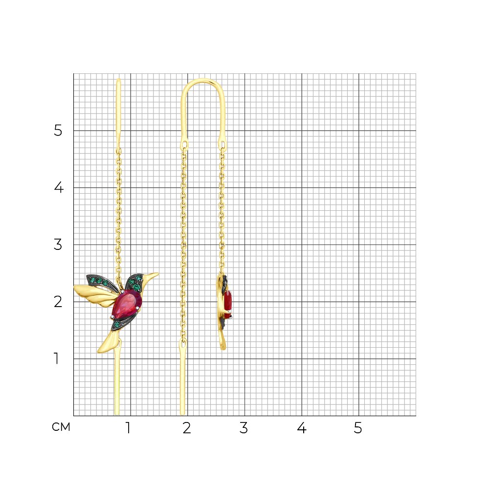 Thread Earrings in 14K/585 Yellow Gold with Rhodolite "Colibri"
