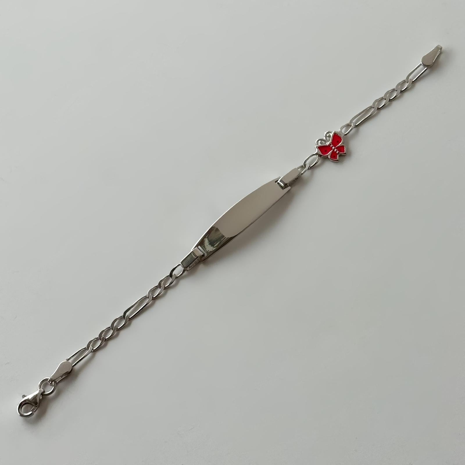 925 Sterling Silver Bracelet Butterfly with Pink Enamel and Plate for Engraving