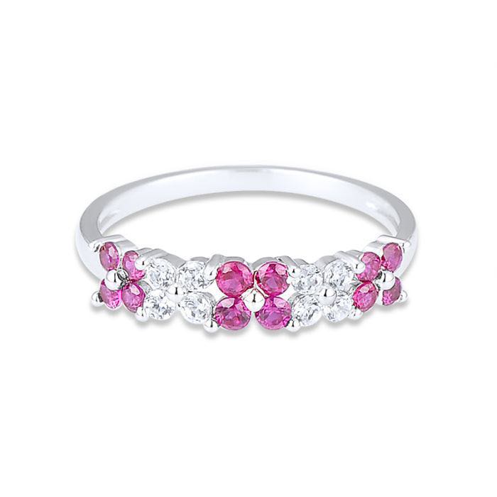 925 Sterling Silver Ring Creted Ruby, White Cubic Zirconia