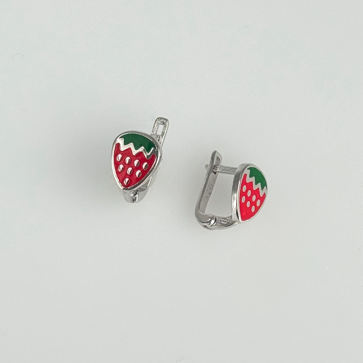 925 Sterling Silver Strawberry Lever Back Earrings with Enamel
