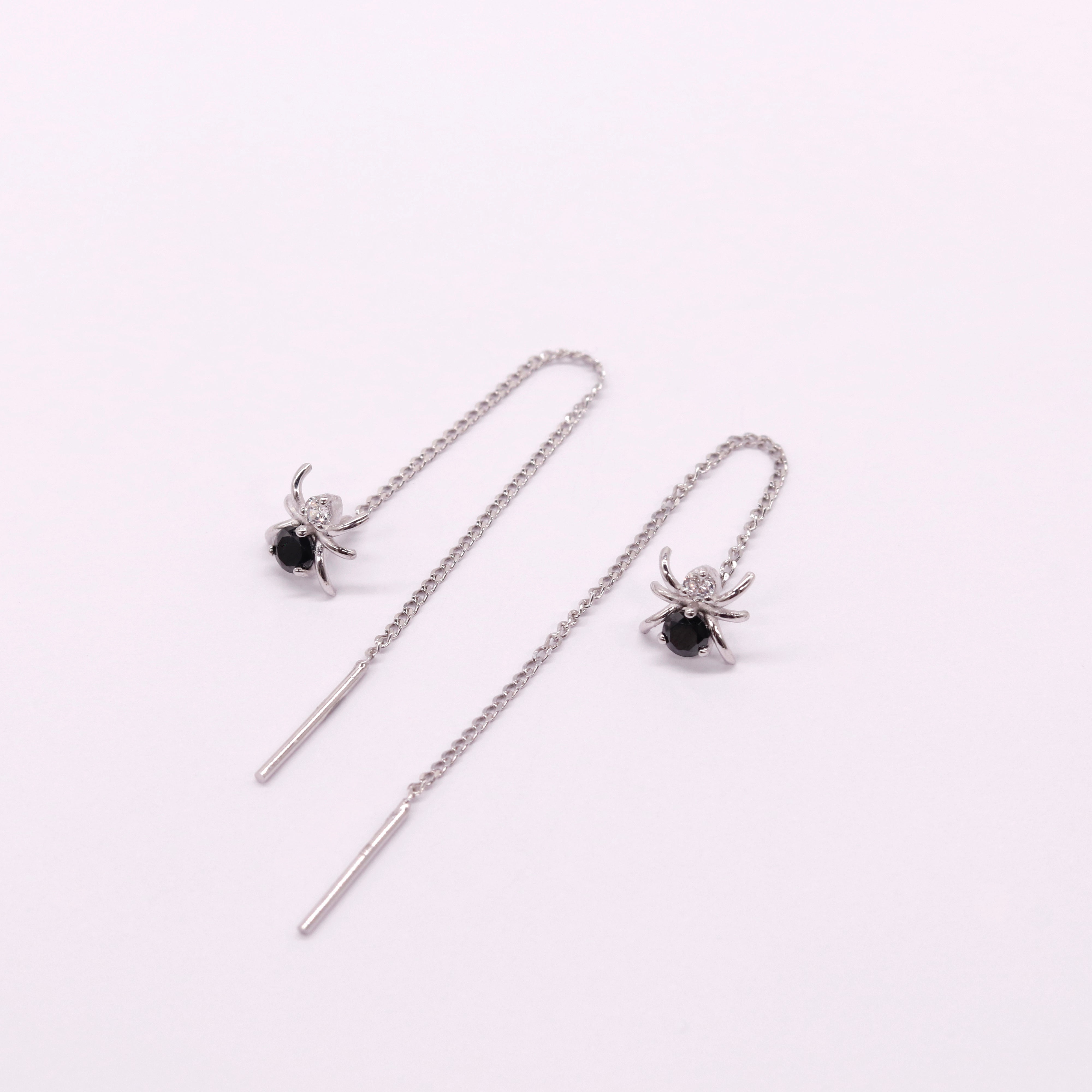 925 Sterling Silver Thread Earrings with Cubic Zirconia