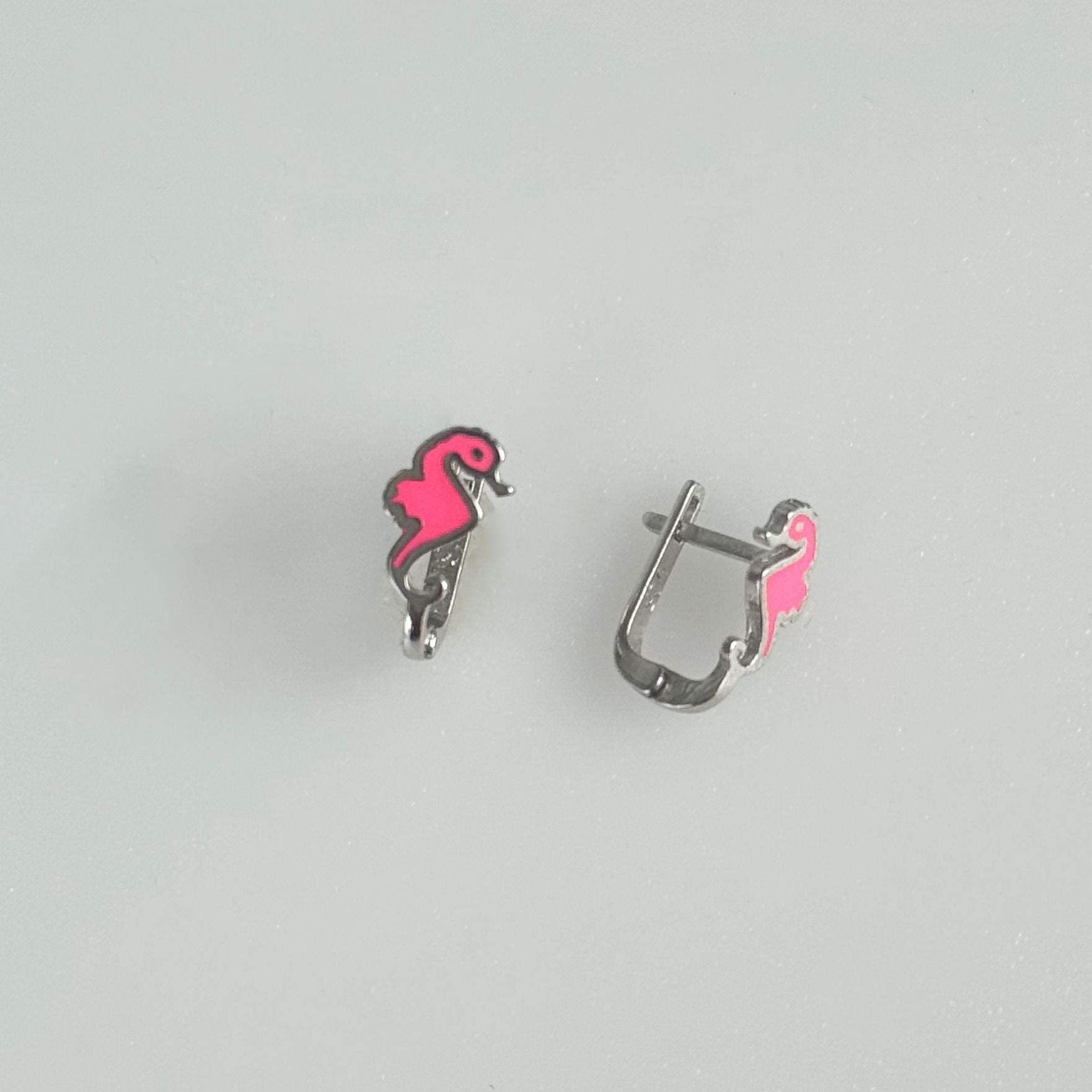 925 Sterling Siver Sea Horse Lever Back Earrings with Enamel