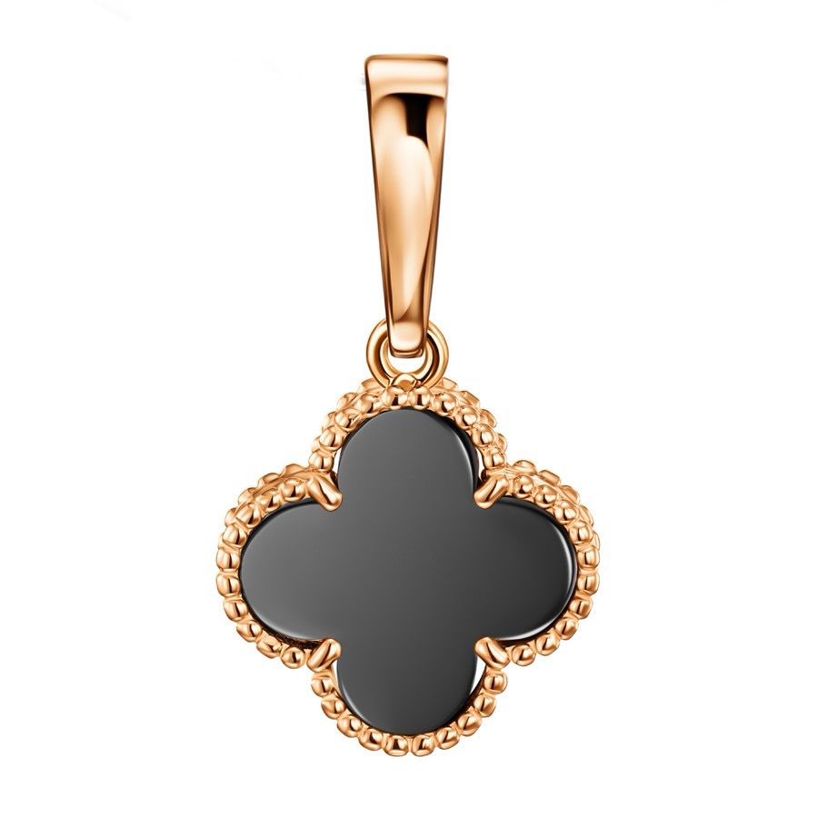 Clover Pendant in 14K/585 Rose Gold with Onyx