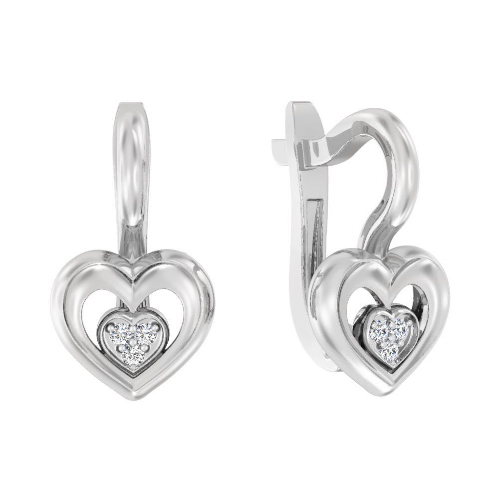 Lever Back Hearts Earrings in 14K/585 White Gold with Cubic Zirconia