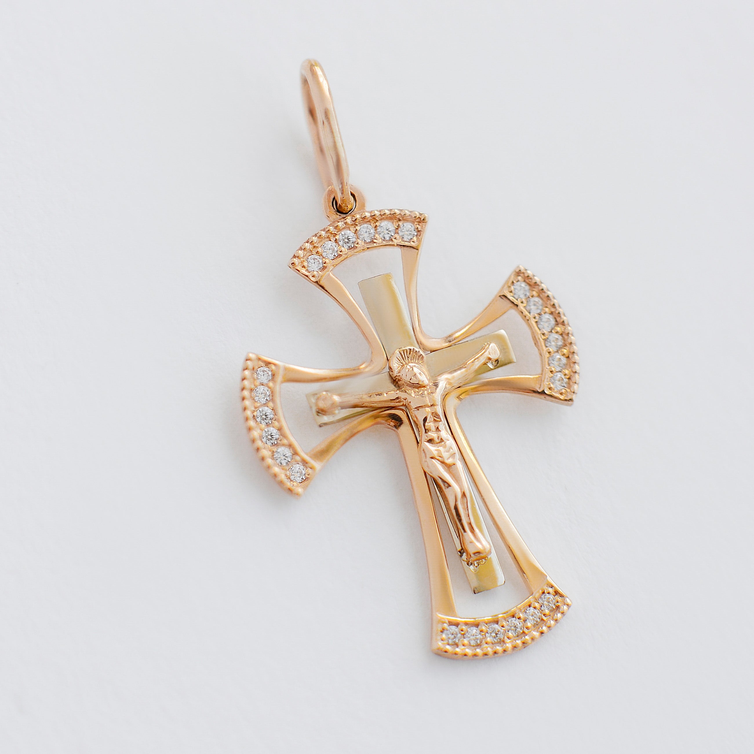 Cross in 14K/585 Rose and White Gold with Cubic Zirconia