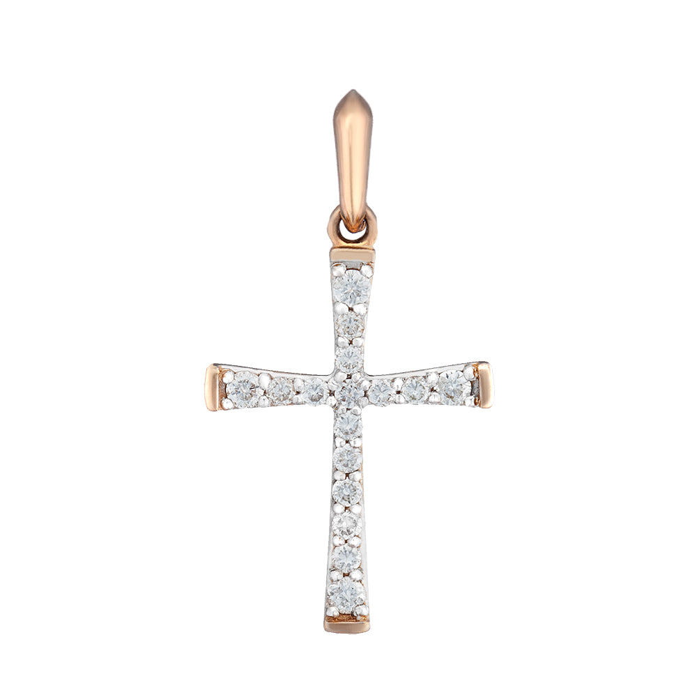 This gorgeous cross pendant is crafted from 14K rose gold and decorated with stunning diamonds, creating an eye-catching, luxurious look. Featuring a contemporary yet timeless design, this pendant is the perfect accessory for any occasion.