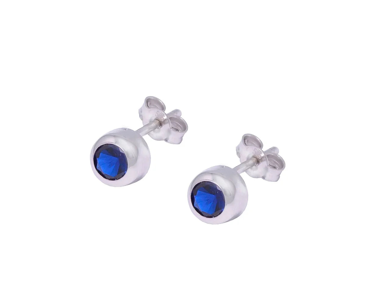 Simple studs in 14K white gold with beautiful blue cubic zirconia in the centre.