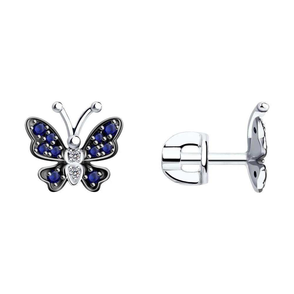 Butterfly Stud Earrings with Sapphires and Diamonds in 14K/585 White Gold
