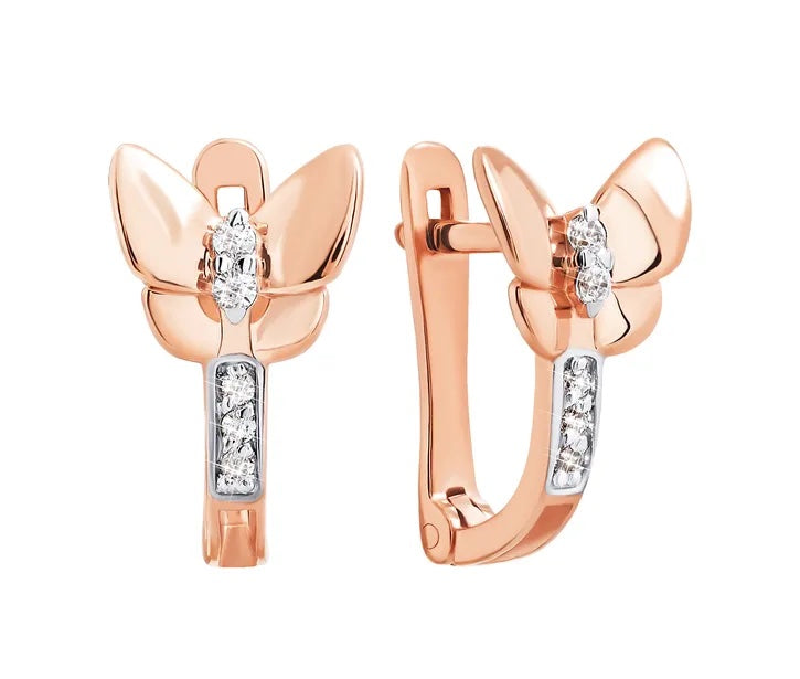Lever Back Butterfly Earrings in 14K/585 Rose Gold