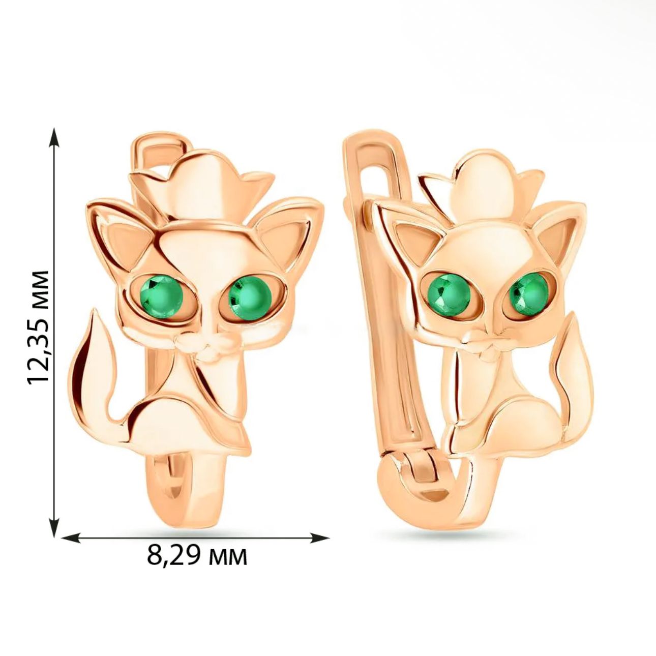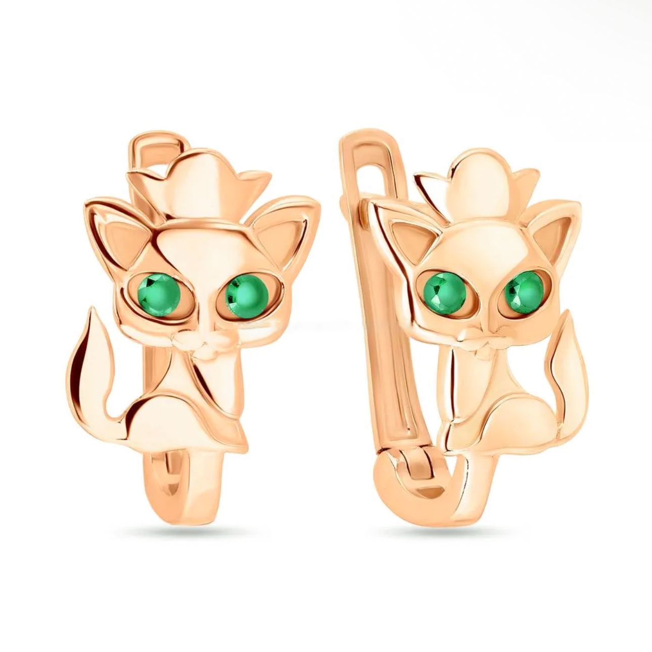Lever Back Cat Earrings in 14K/585 Rose Gold with Cubic Zirconia