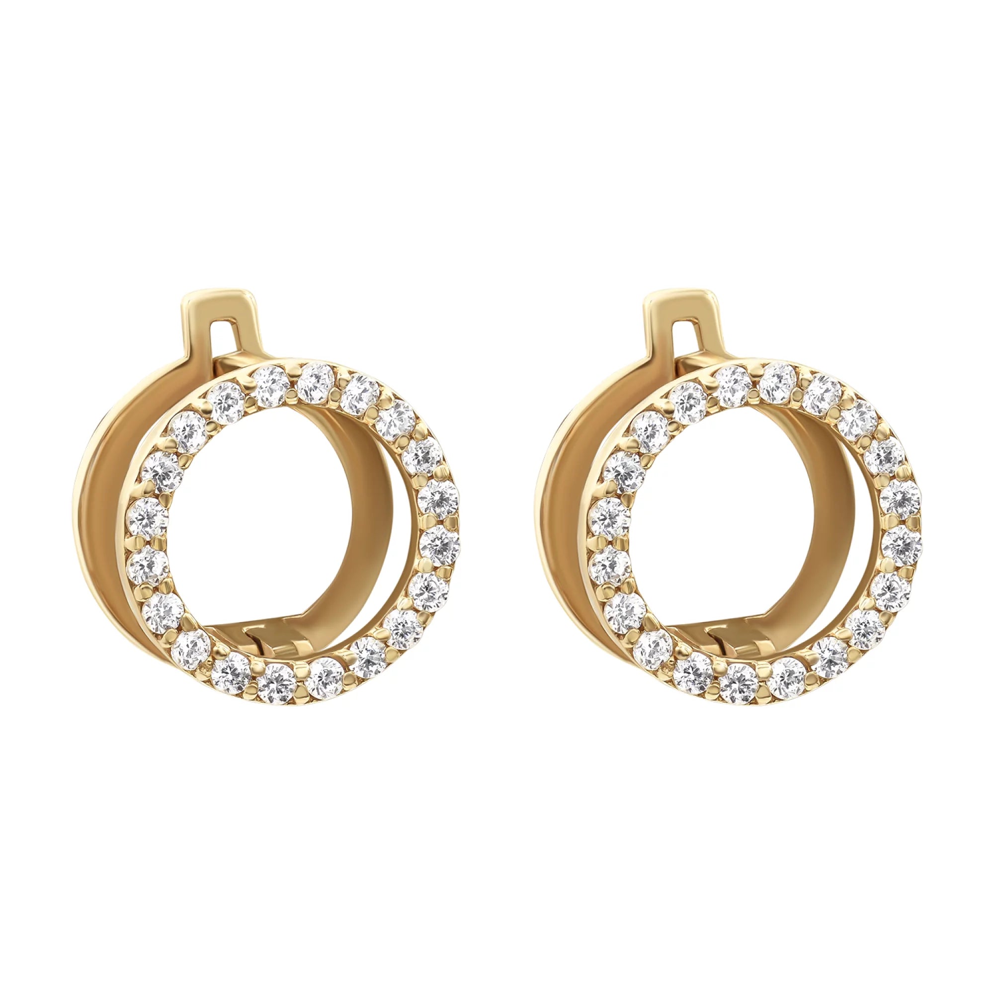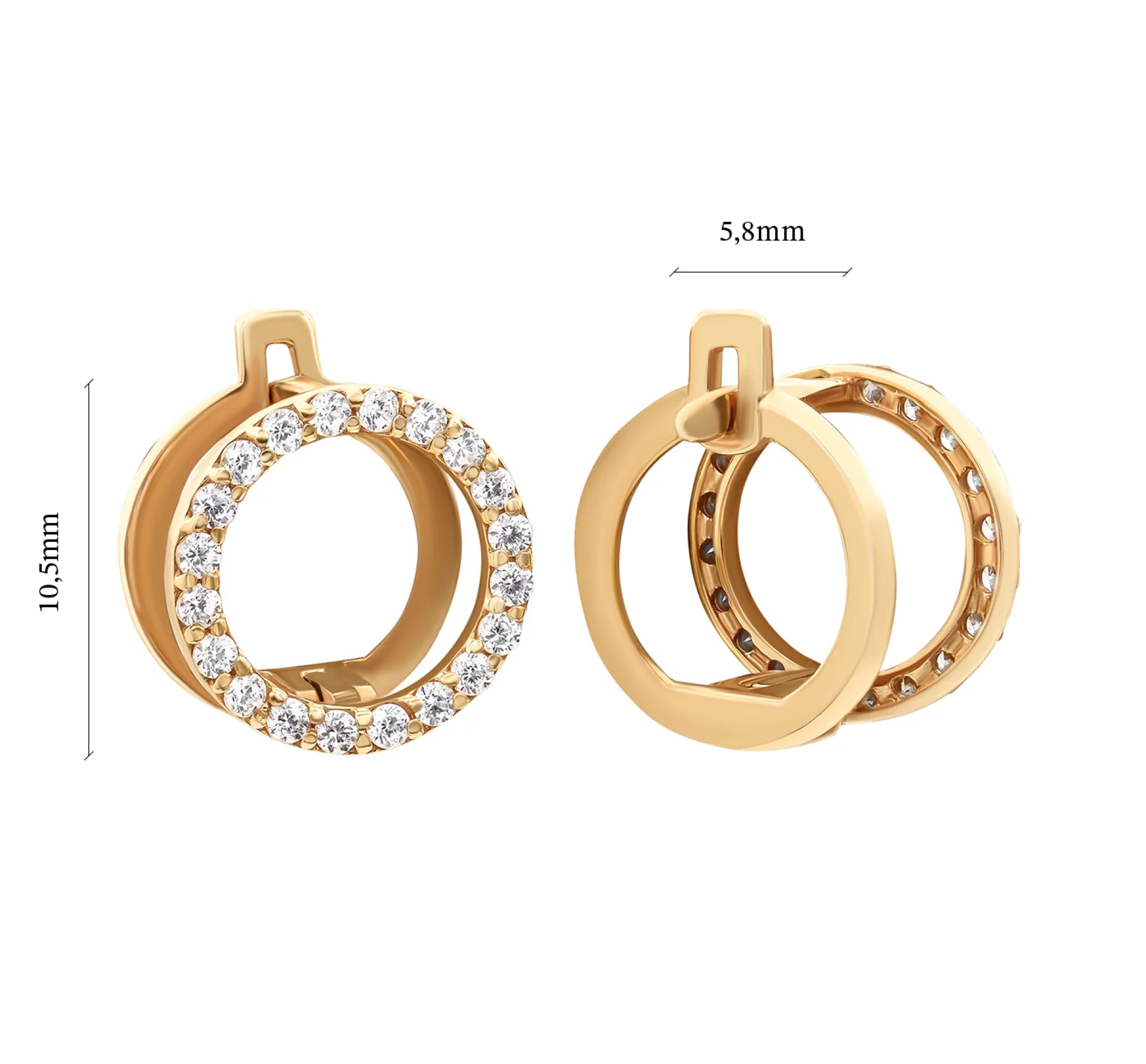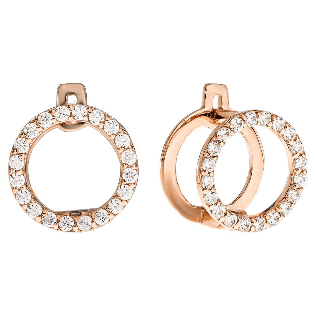 Lever Back Circles Earrings in 14K/585 Rose Gold with Cubic Zirconia