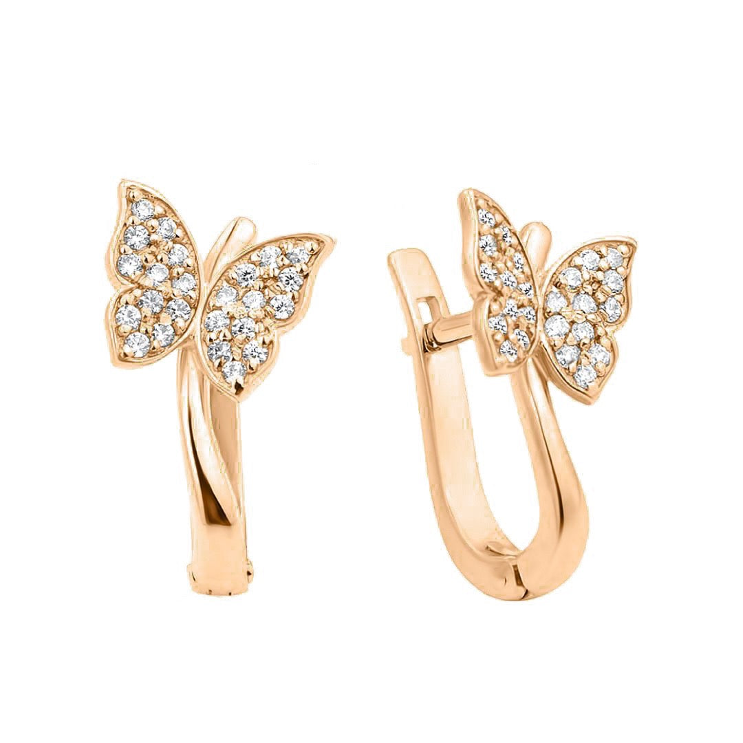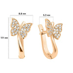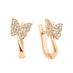 Lever Back Earrings in 14K/585 Yellow Gold "Butterflies" with Clear Cubic Zirconia