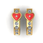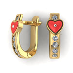 Lever Back Earrings in 14K/585 Yellow Gold with Enamel Hearts and Cubic Zirconia