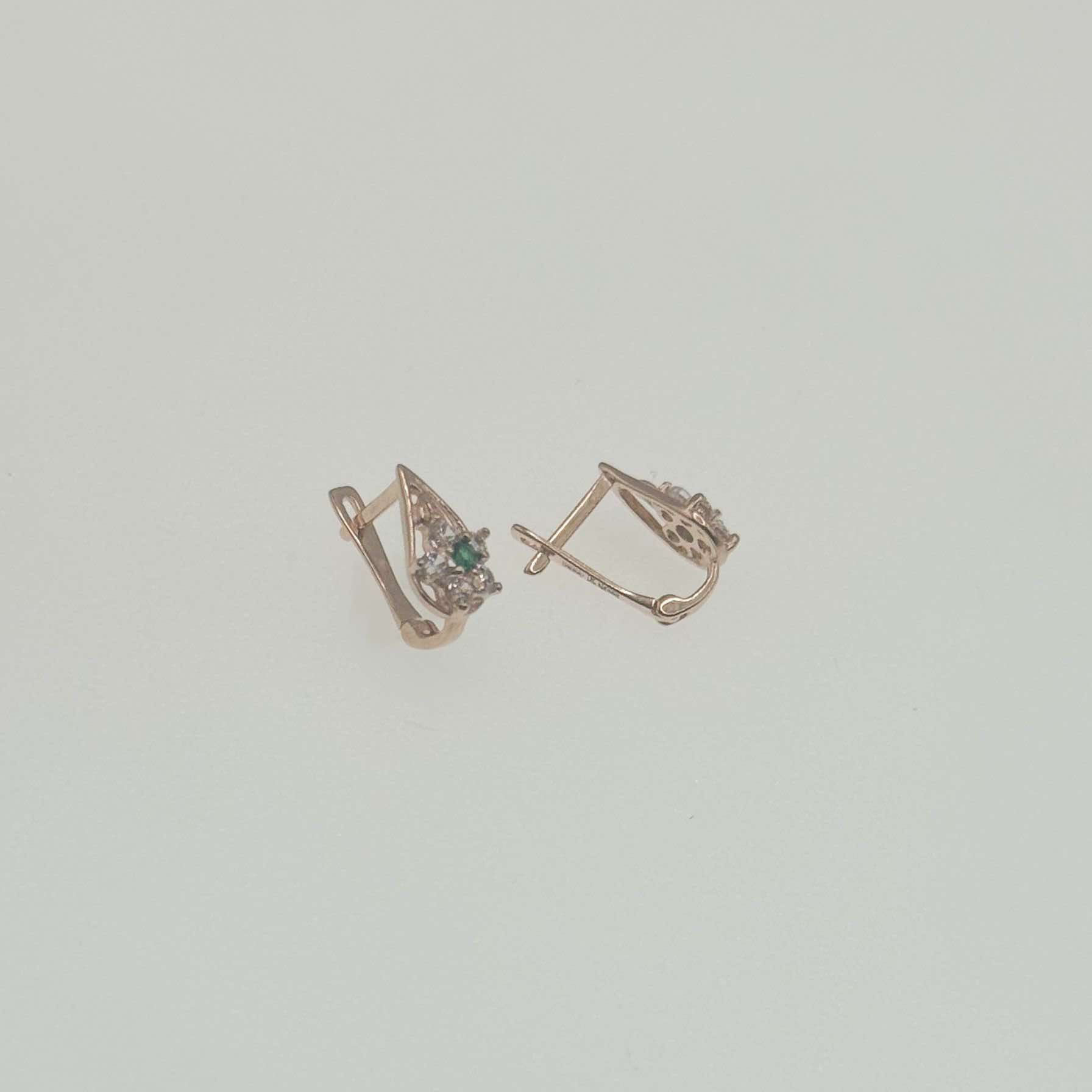 Lever Back Earrings in 14K/585 Rose Gold with Green and White Cubic Zirconia