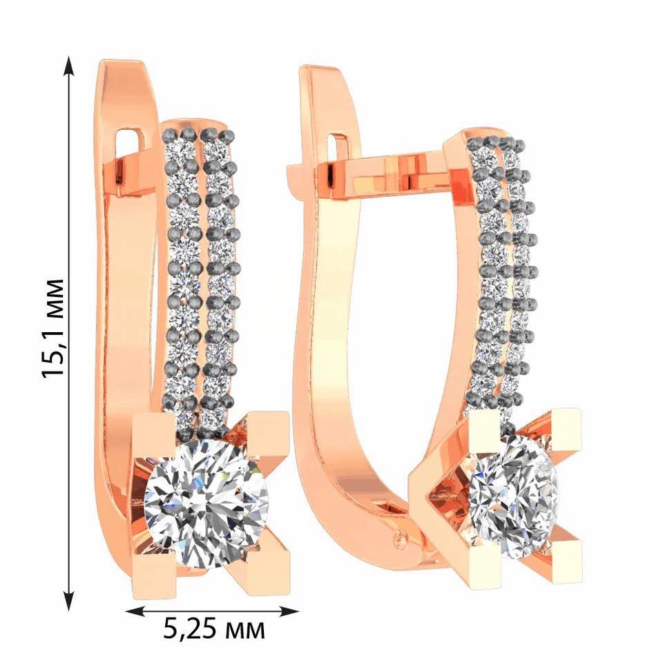 Lever Back Earrings with Cubic Zirconia in 14K/585 Rose Gold