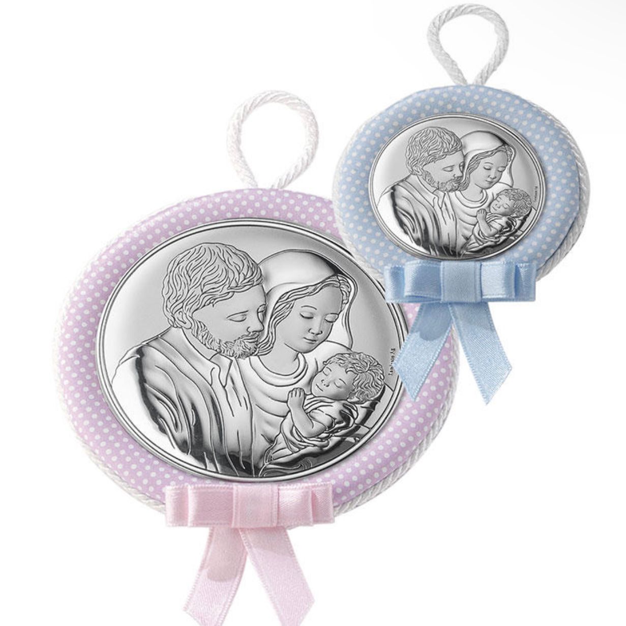 Musical Medallion Holy Family for a Baby Crib Pink
