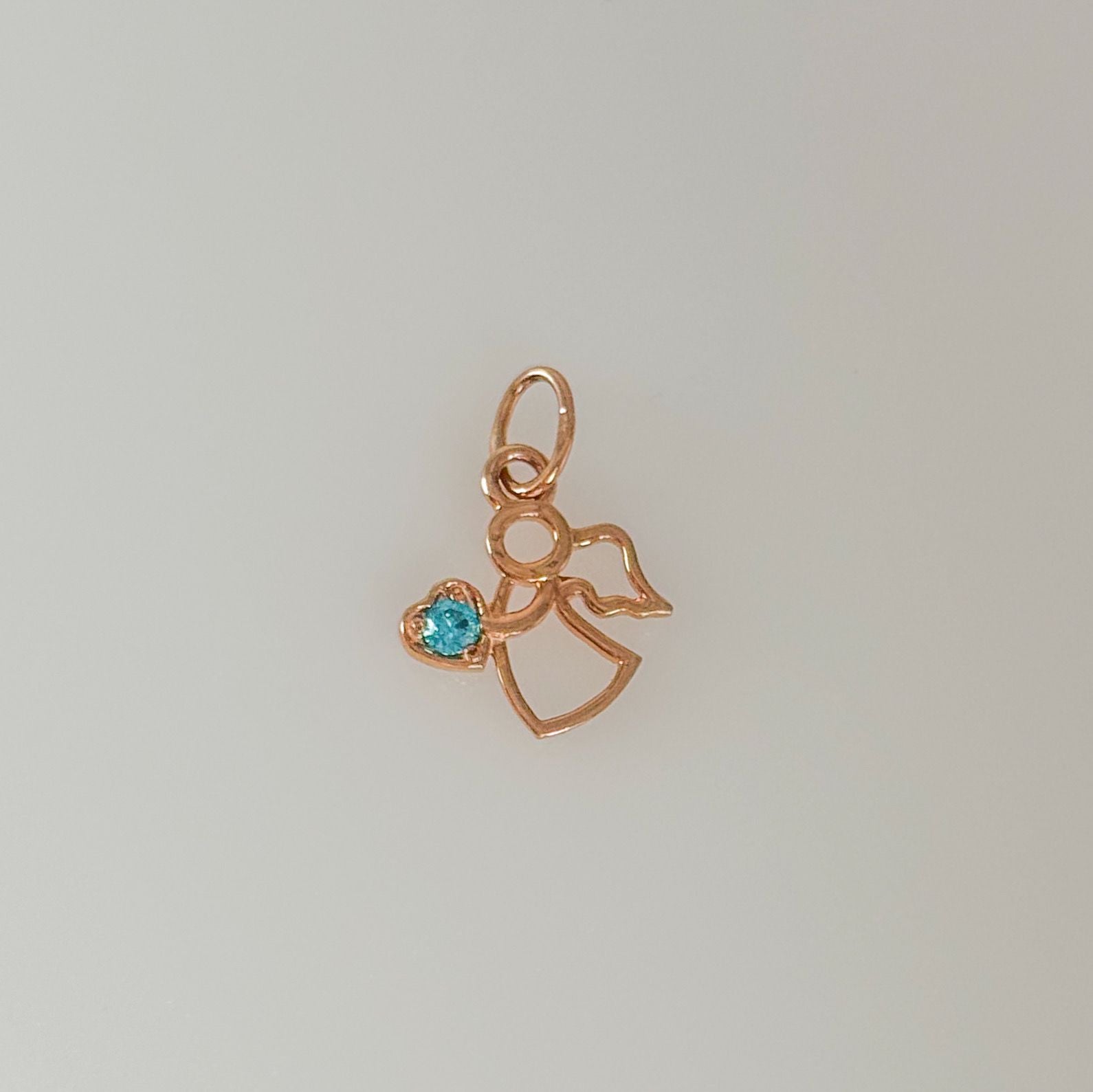 Pendant in 14K/585 Rose Gold with Blue Cubic Zirconia "Angel with Heart"