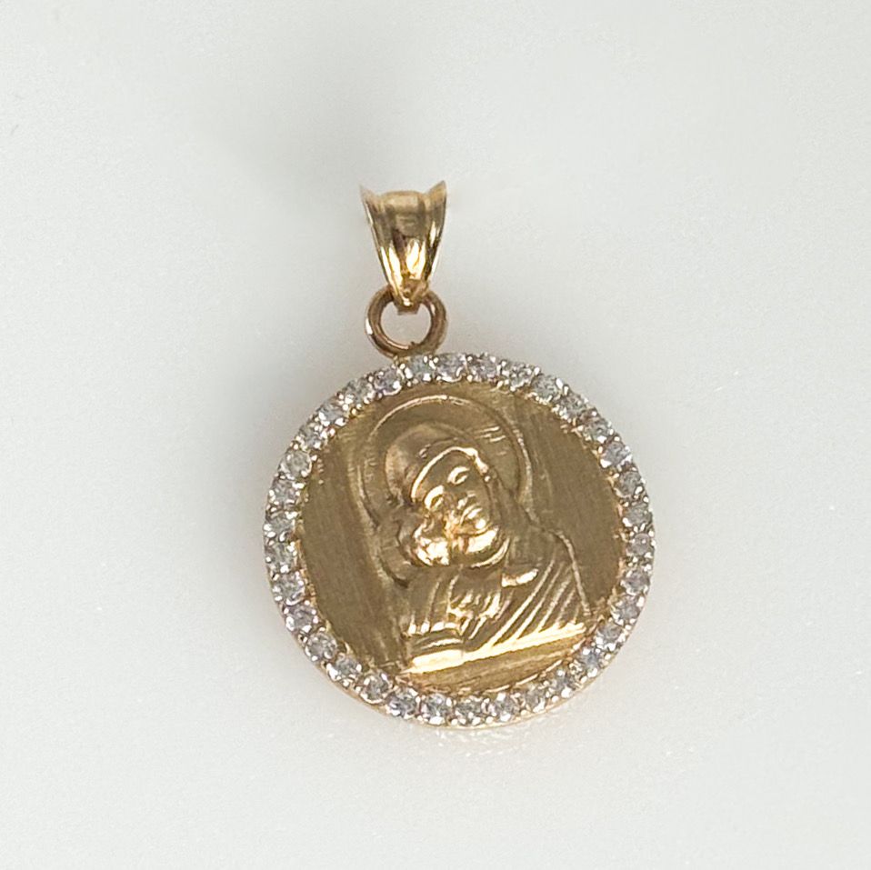 Pendant in 14K/585 Yellow Gold "St. Mary and Jesus" with Cubic Zirconia