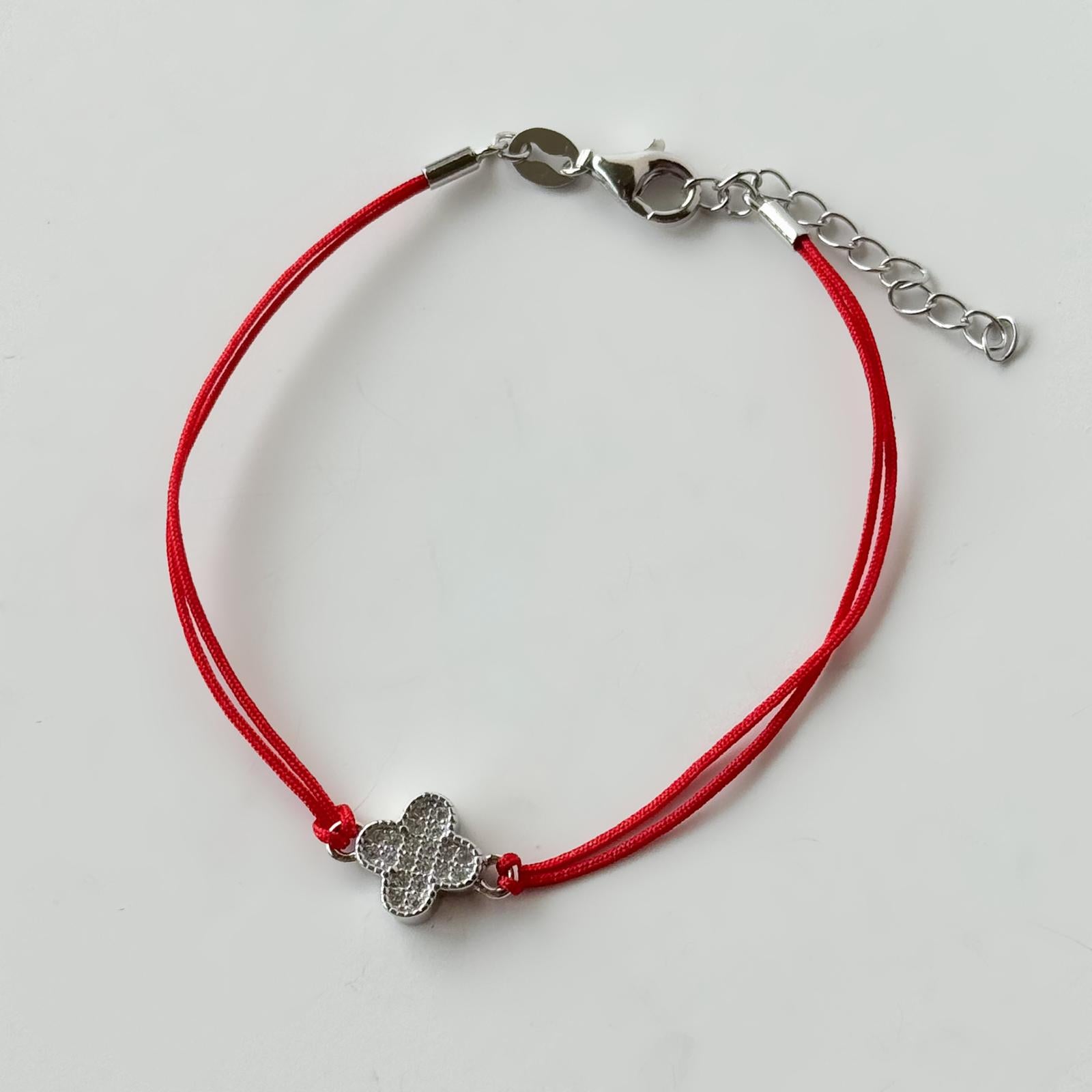 Red String Bracelet with 925 Sterling Silver Clover and Cubic Zirconia