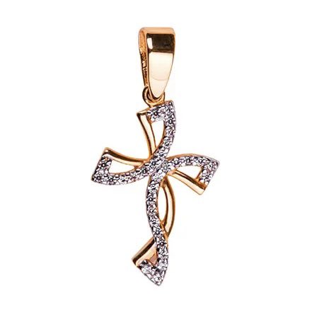 Unique and really cute cross in 14K/585 rose gold decorated with sparkling cubic zirconia.
