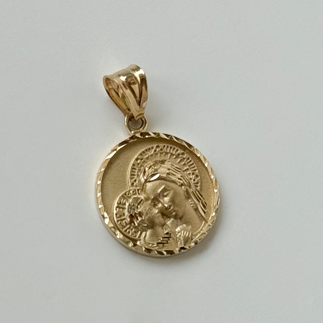 St.Mary and Jesus Pendant in 14K/585 Yellow Matte Gold