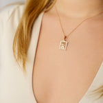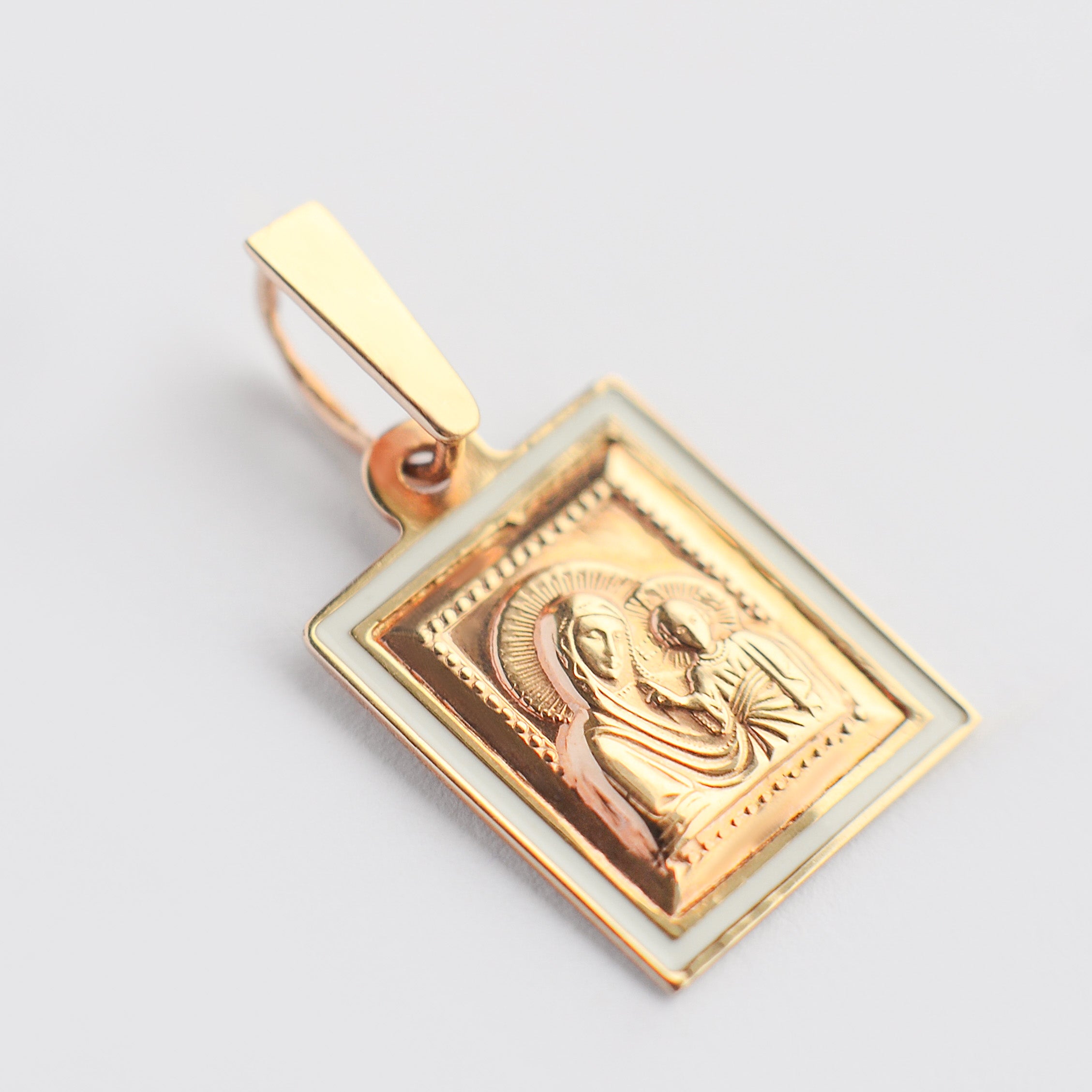 Religious pendant made in solid 14K rose gold, decorated with white enamel.