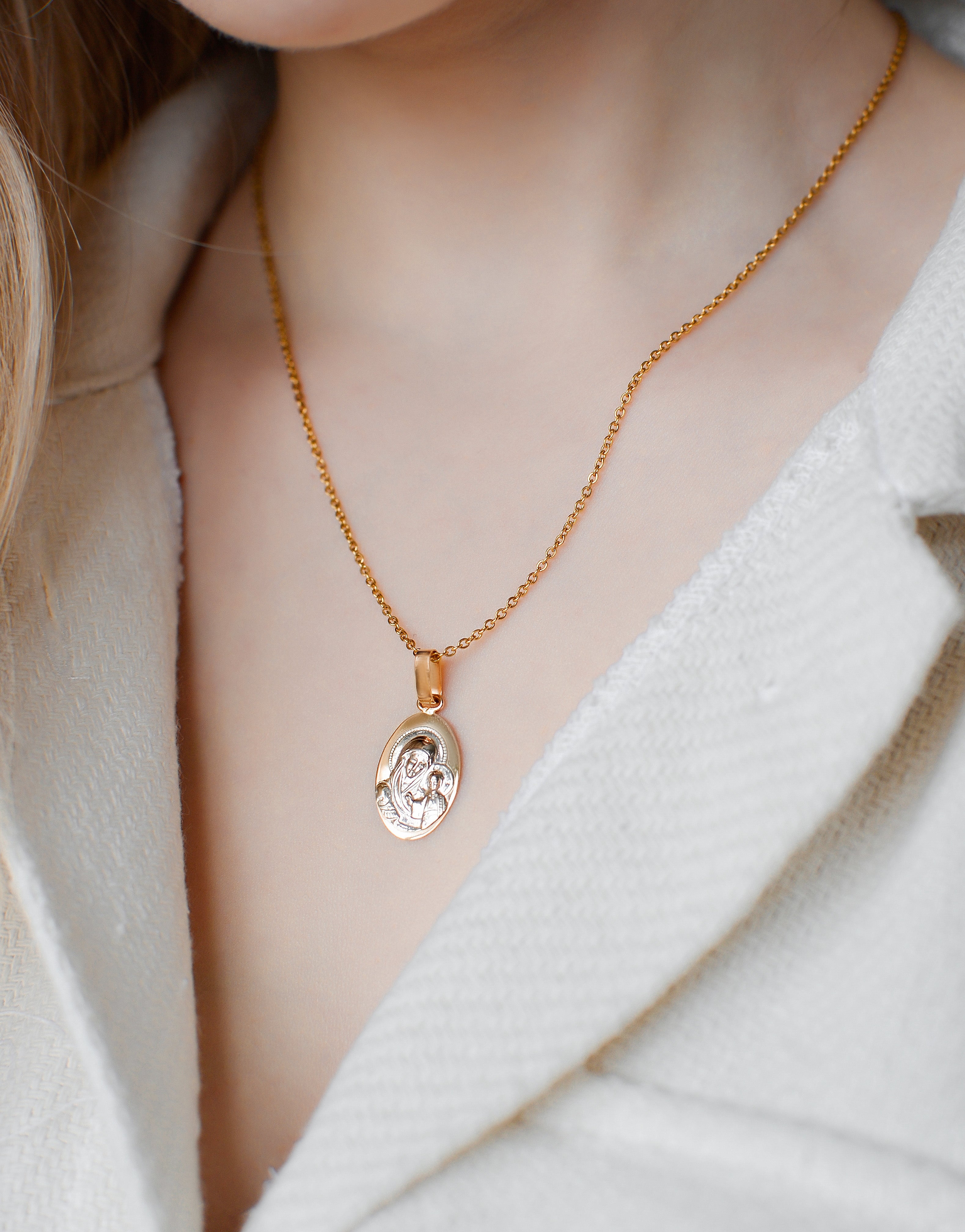 St. Mary and Jesus Pendant in 14K/585 Rose Gold and White Gold