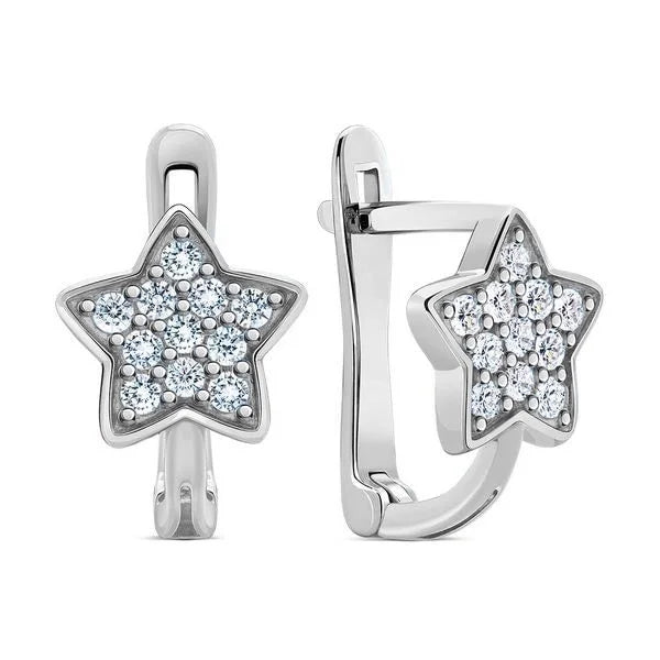 Stars Lever Back Earrings in 14K/585 White Gold with Cubic Zirconia