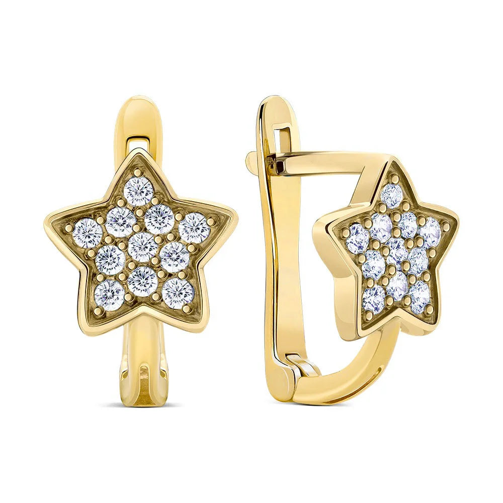 Stars Lever Back Earrings in 14K/585 Yellow Gold with Cubic Zirconia