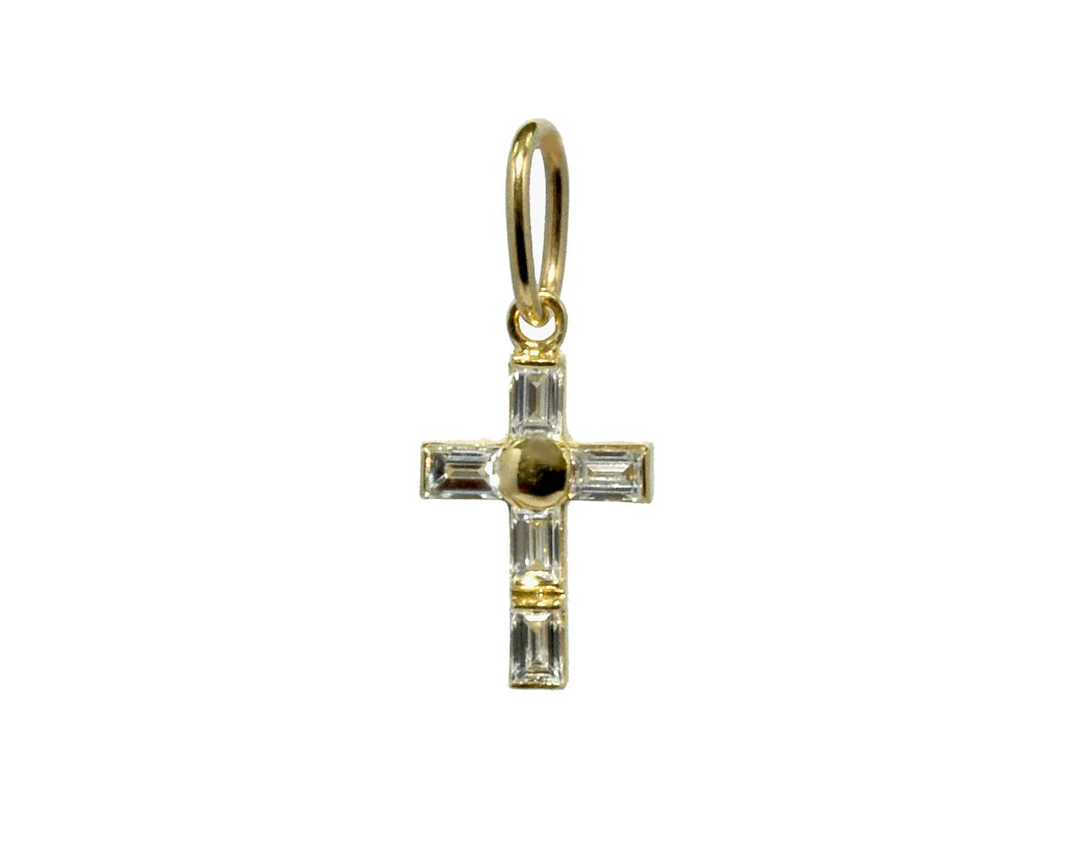 14K/585 Yellow Gold Cross with Square Cubic Zirconia
