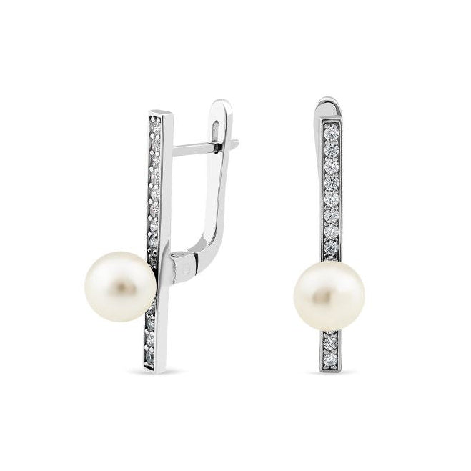 925 Sterling Silver Earrings with Pearls and Cubic Zirconia