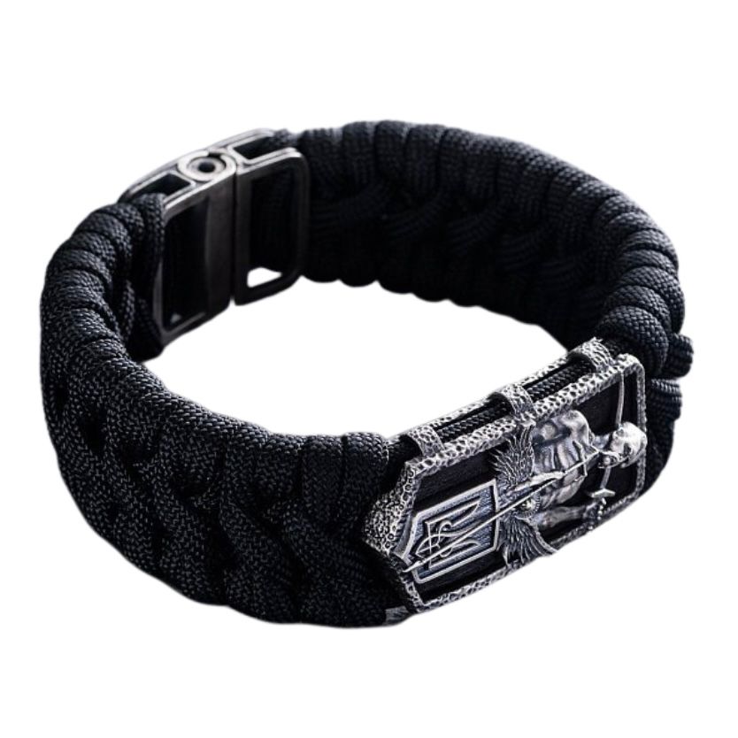 Rope Bracelet with 925 Sterling Silver Cossack and Tryzub