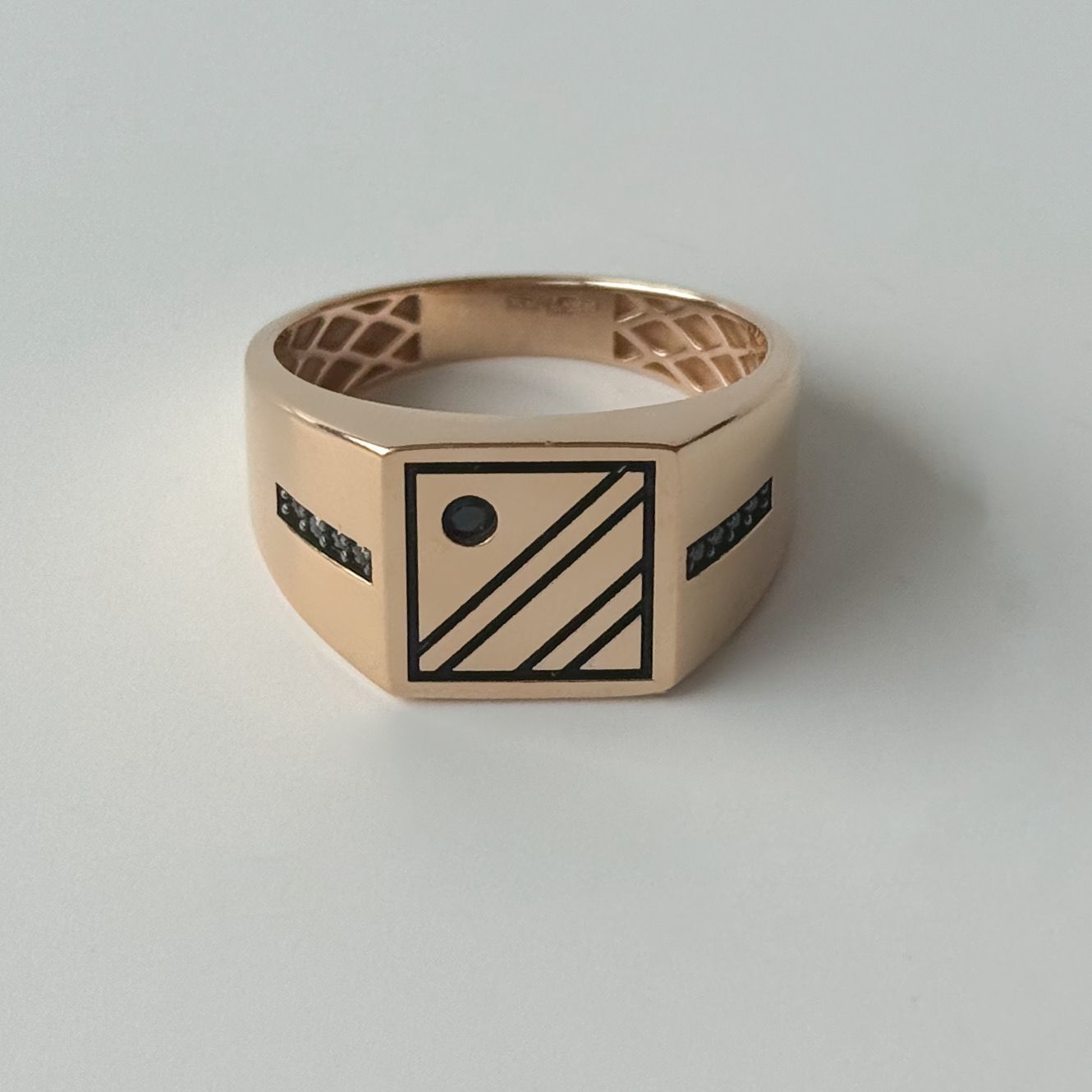 Ring in 14K/585 Rose Gold with Enamel and Black Cubic Zirconia