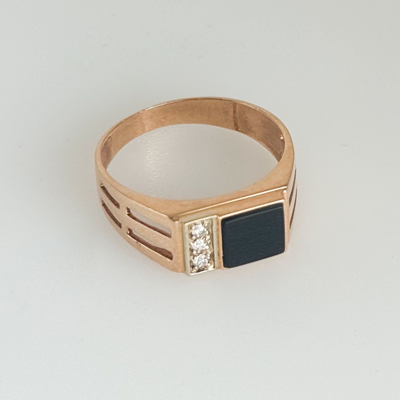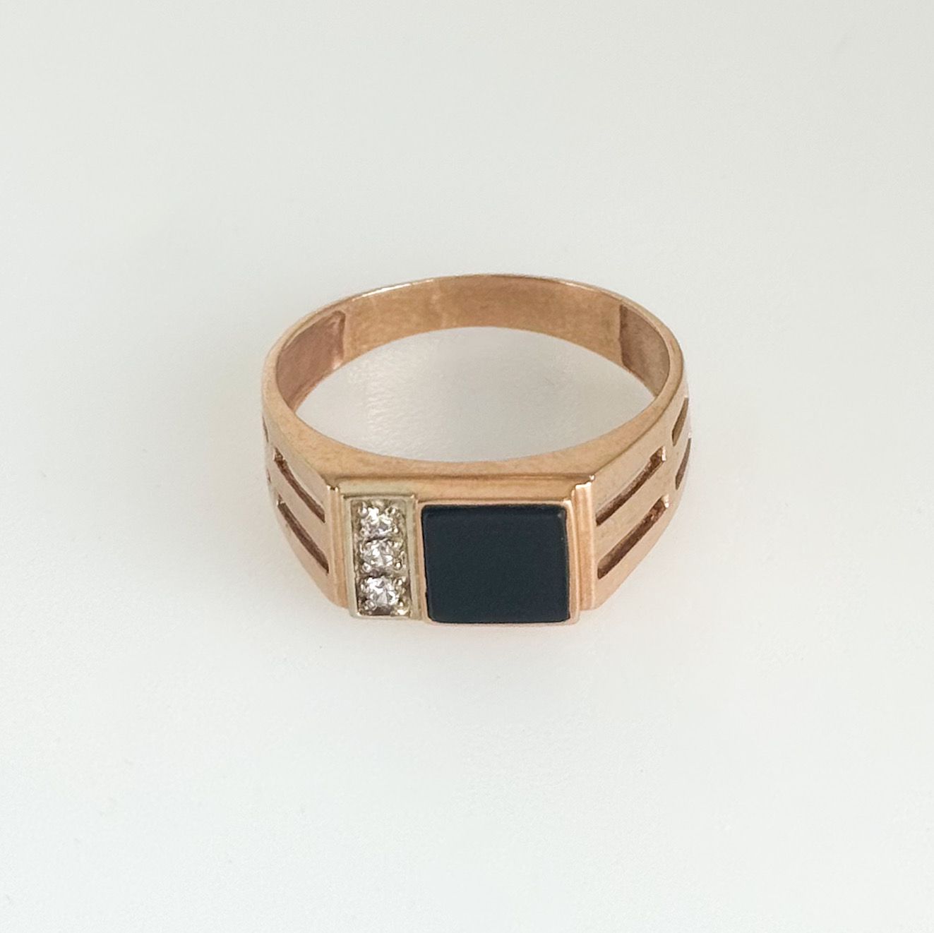 Ring in 14K/585 Rose Gold with Onyx and Cubic Zirconia