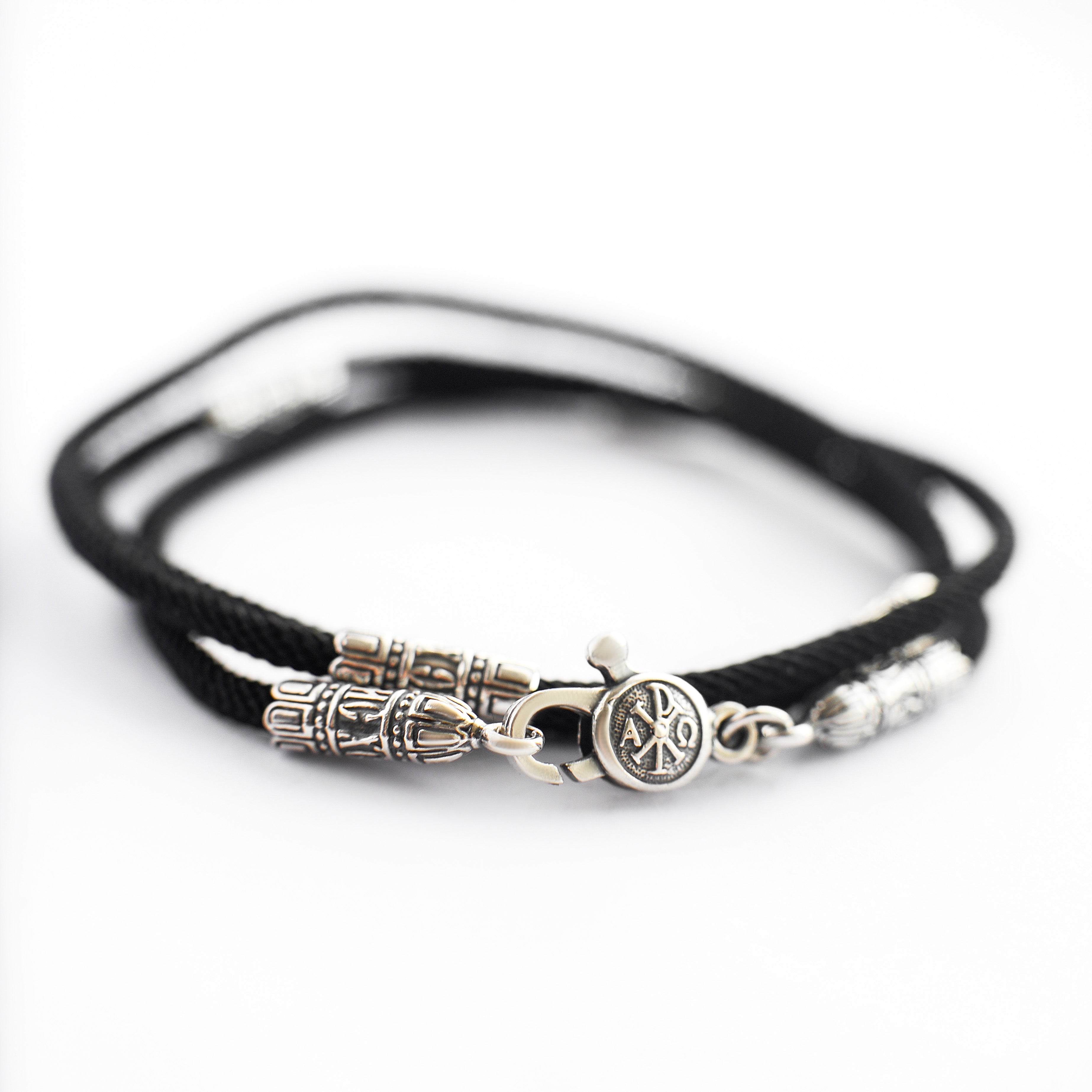 This elegant and timeless rope necklace, crafted from rich silk and embellished with 925 sterling silver inserts and a durable lock, is the perfect accessory for the modern man who appreciates classic luxury. Finely crafted with high-end materials and featuring sterling silver details, this luxurious piece highlights sophistication and exclusivity.