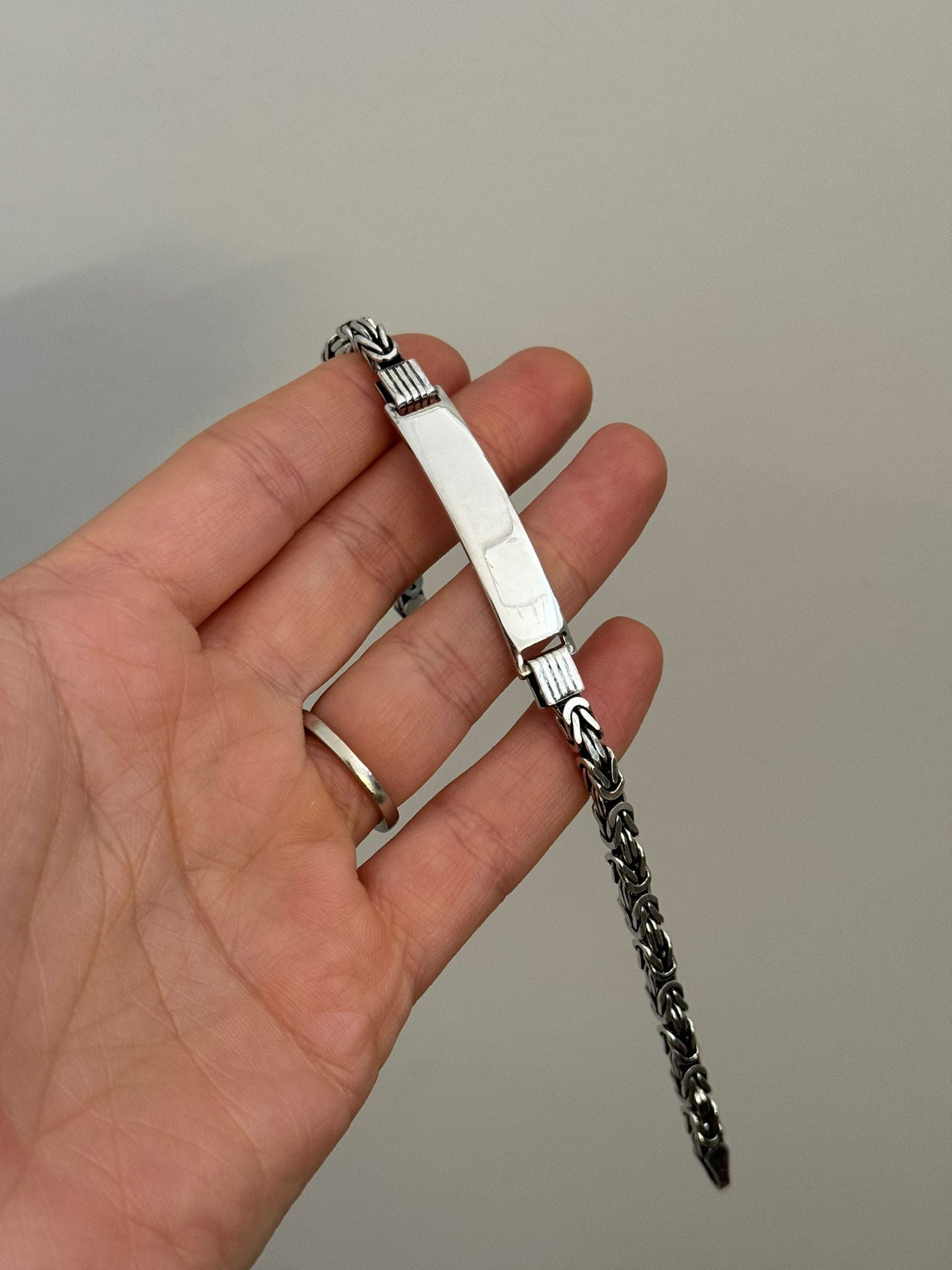 925 Sterling Silver Bracelet Dyed Black Agate with Cross