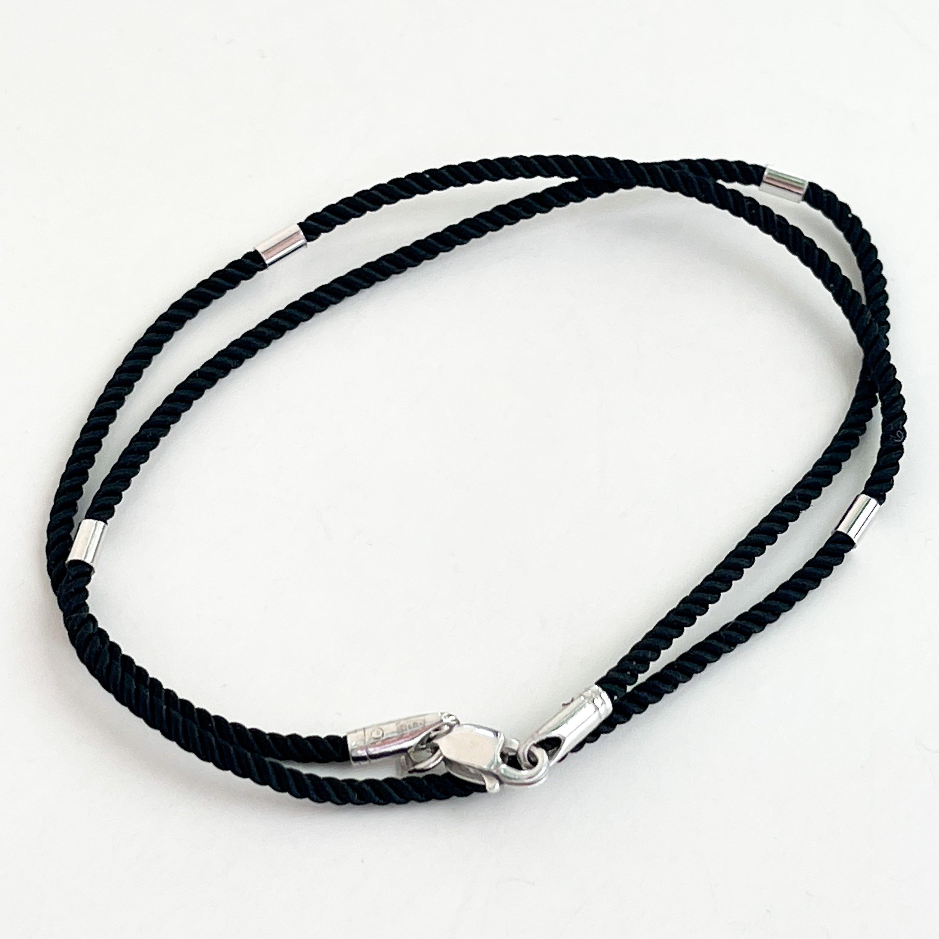 Silk Rope Necklace with 925 Sterling Silver Inserts and Lock 3 mm