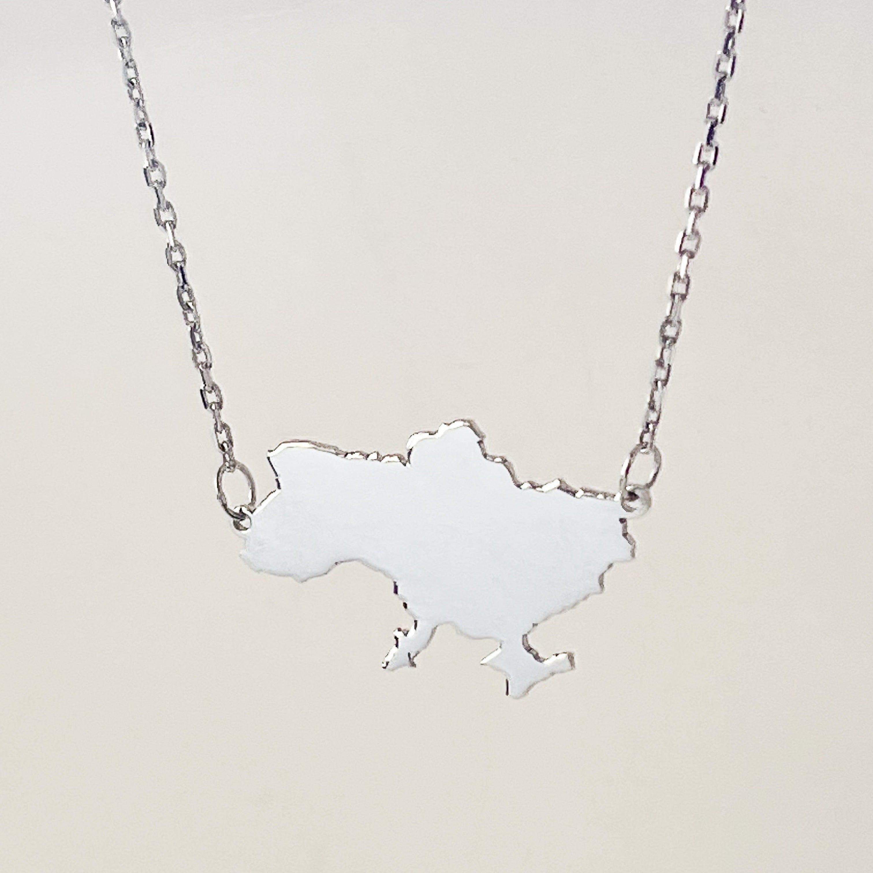 925 Sterling Silver Map of Ukraine Necklace