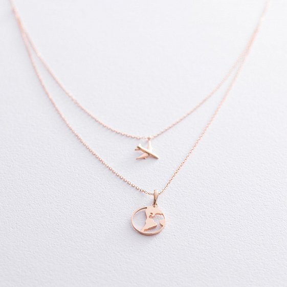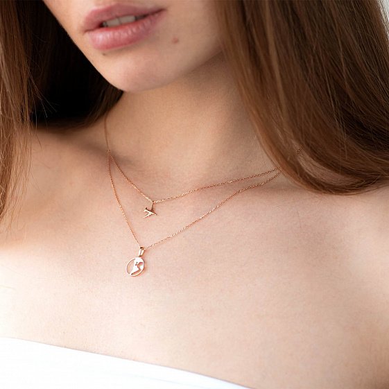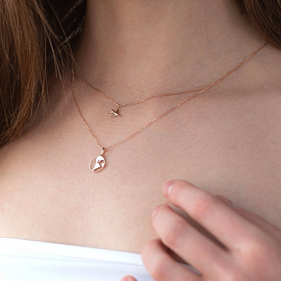 Take off to a dazzling destination with this cute "Traveller" Necklace in 14K Rose Gold! Featuring two layers (an airplane and a globe), this necklace is perfect for jet-setting spirit looking to show off their love of travel. Solid 14K Rose Gold construction ensures you'll stay stylish and sophisticated in your travels, no matter where they take you!