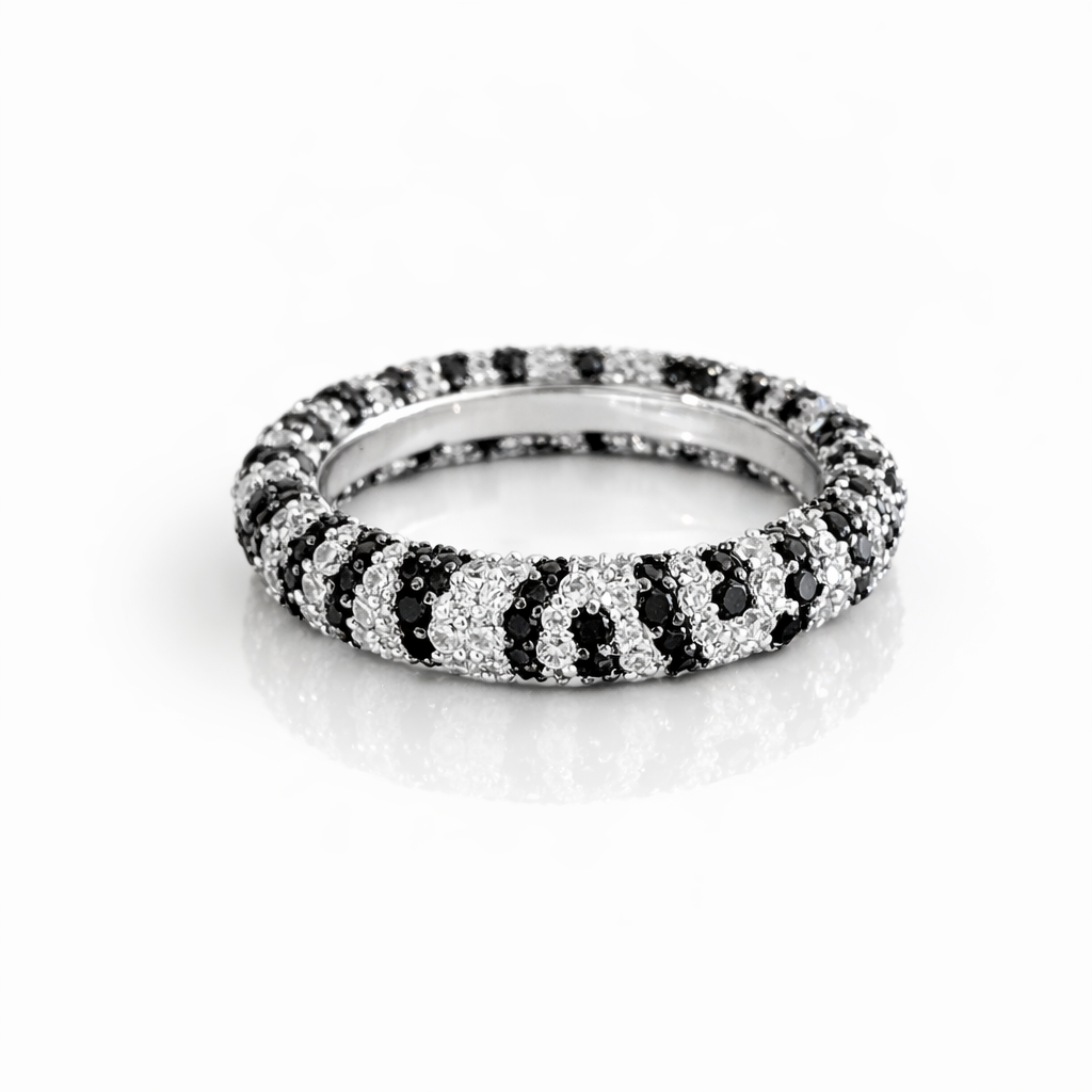 925 Sterling Silver Ring with Black and White Cubic Zirconia