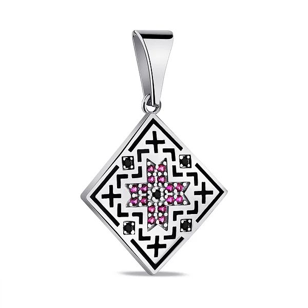 925 Sterling Silver Vyshyvanka Pendant with Enamel and Cubic Zirconia