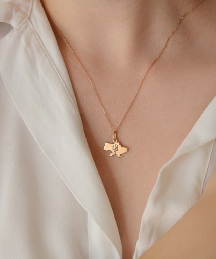 Map of Ukraine with Tryzub in 14K/585 Rose Gold