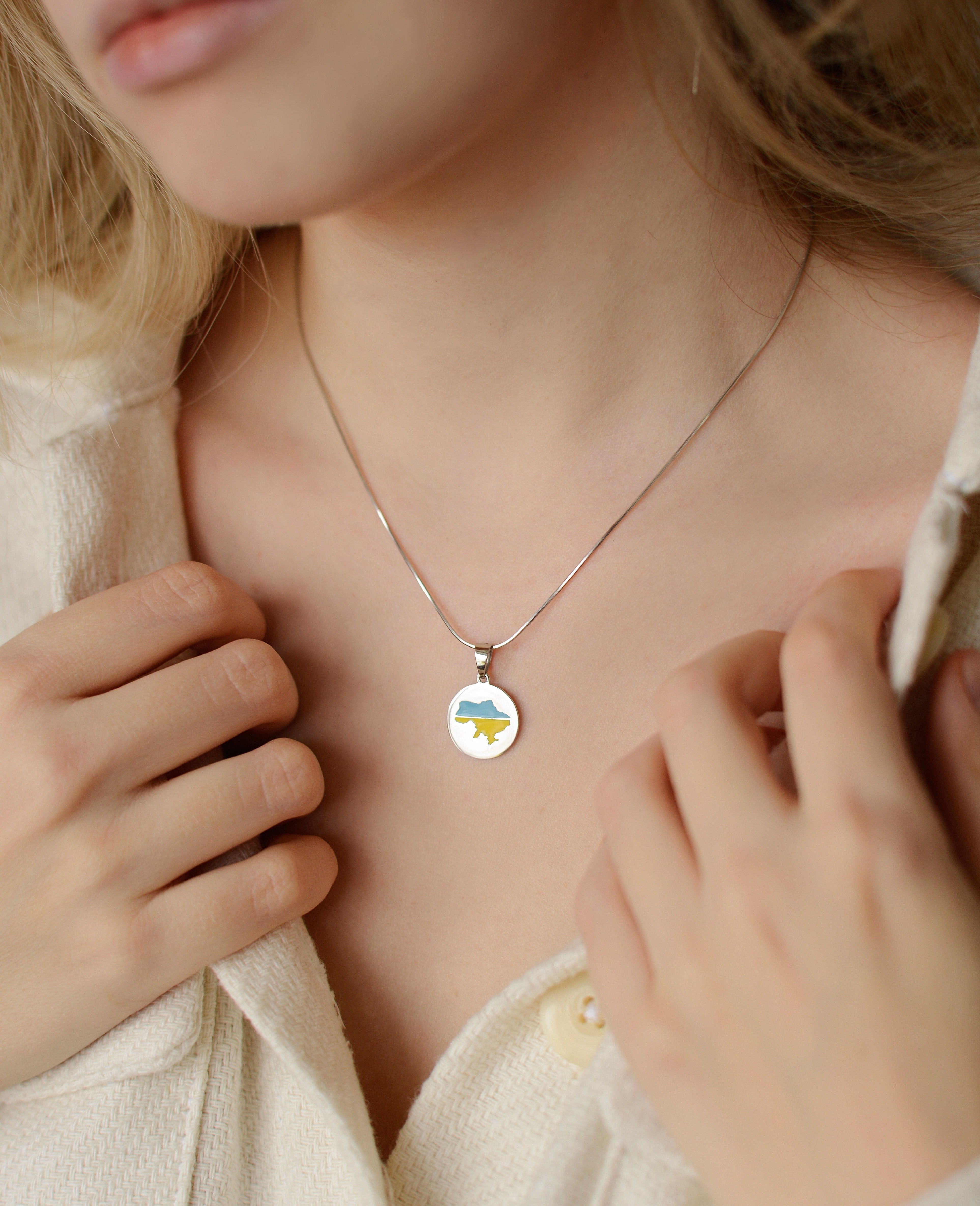 Charity Item: 925 Sterling Silver Pendant Map of Ukraine with Blue and Yellow Enamel