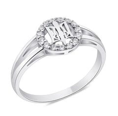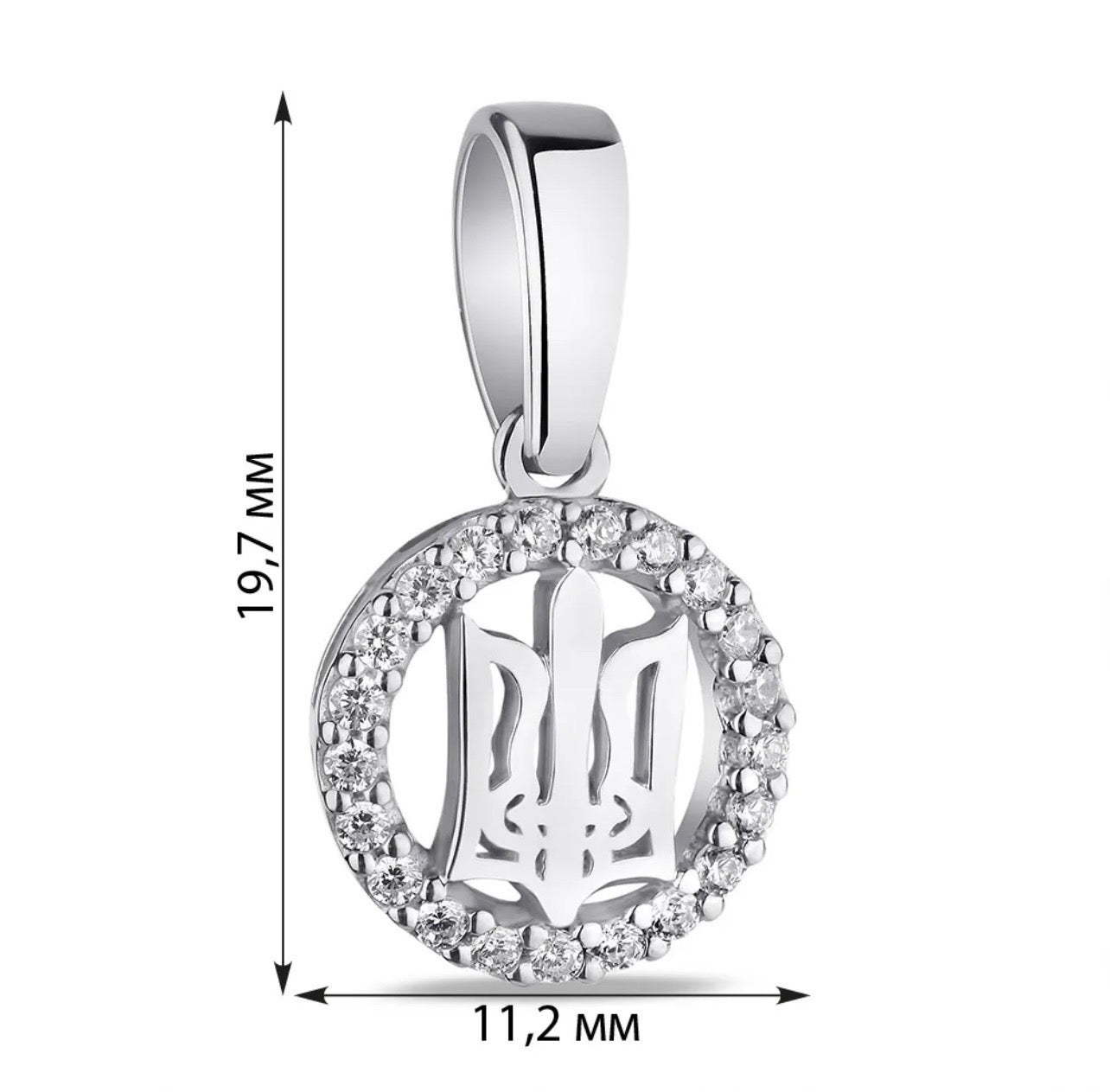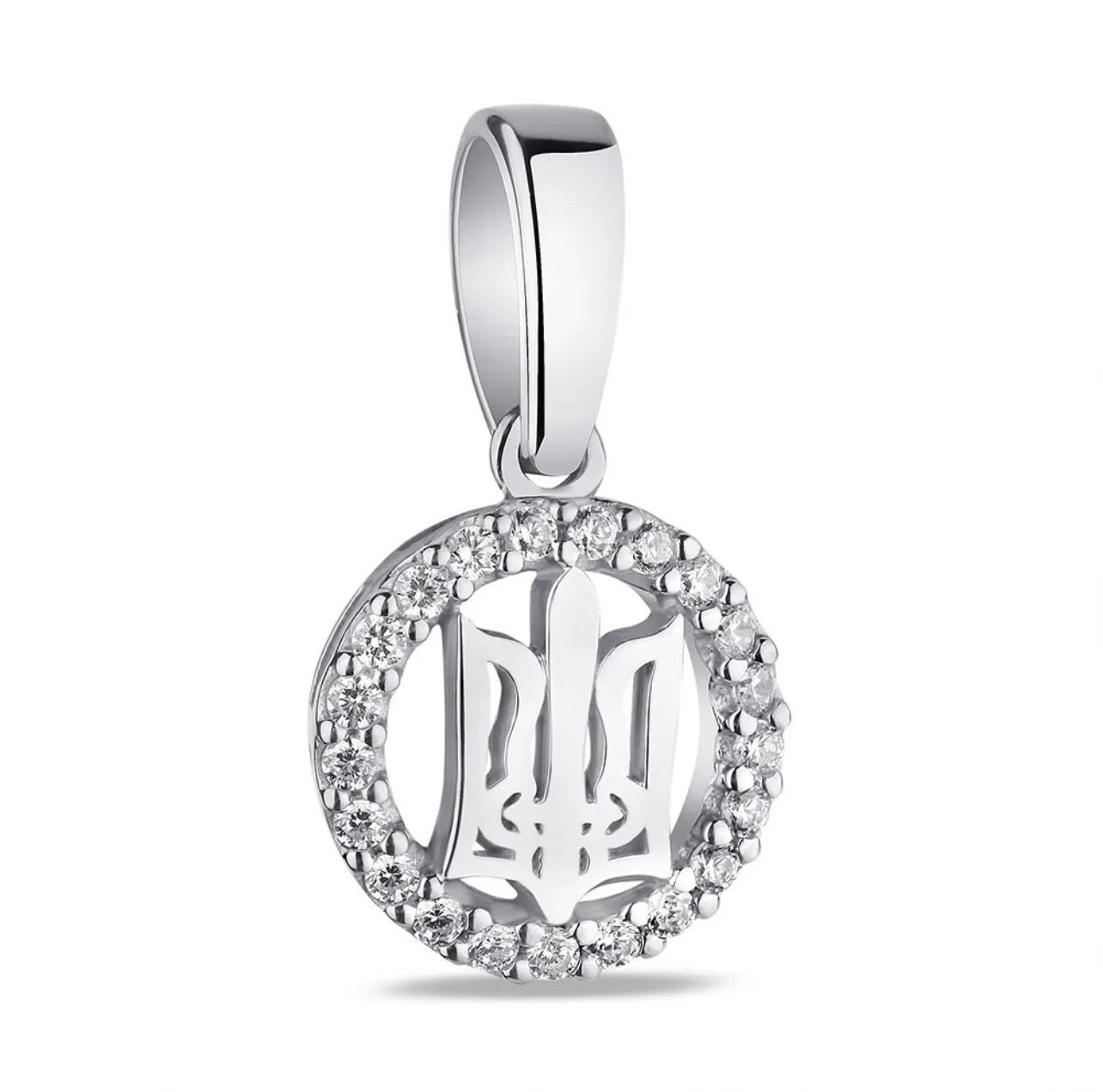 925 Sterling Silver Tryzub Pendant with Cubic Zirconia
