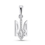 Add a touch of elegance to any outfit with our Tryzub pendant in 14K white gold. The intricate design features a trio of dazzling diamonds, making it the perfect accessory for any occasion. Embrace luxury and sophistication with this stunning pendant.