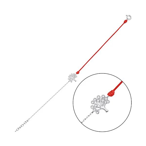 Red String Bracelet with 925 Sterling Silver "Tree of Life" and Cubic Zirconia