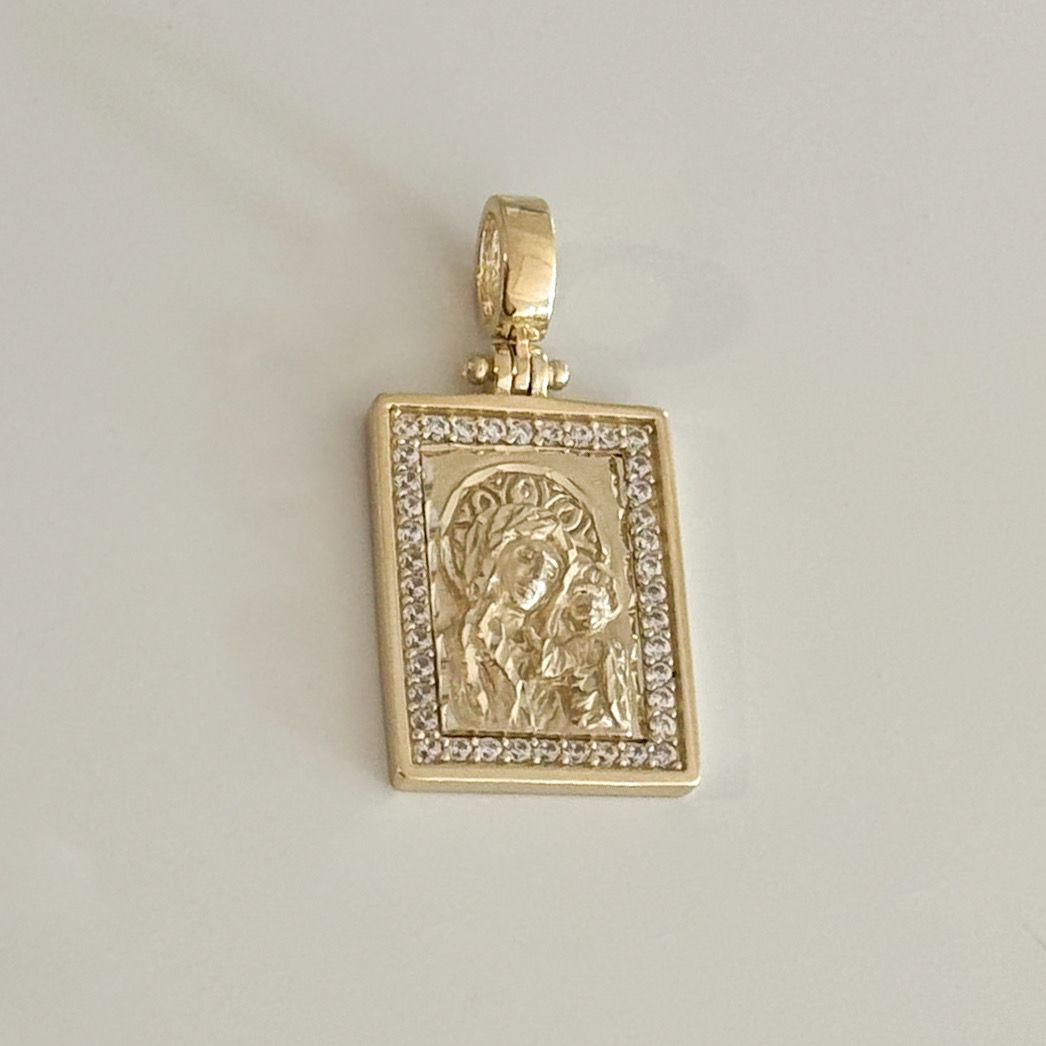 St.Mary and Jesus Pendant in 14K/585 Yellow Gold with Cubic Zirconia