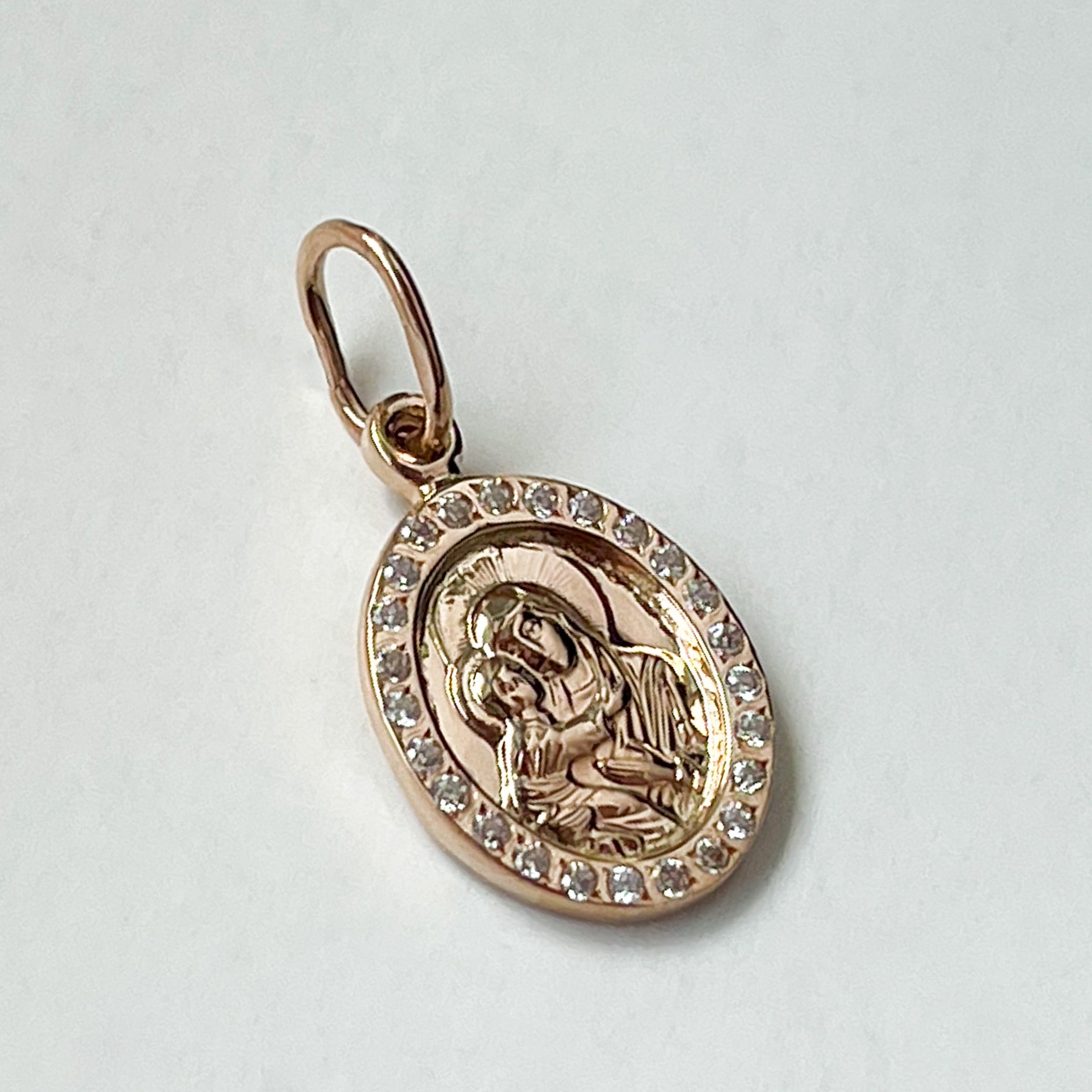 St. Mary and Jesus Pendant in 14K/585 Rose Gold with Cubic Zirconia